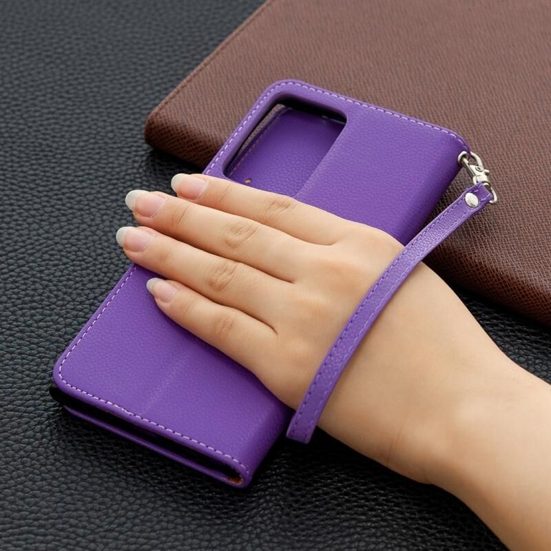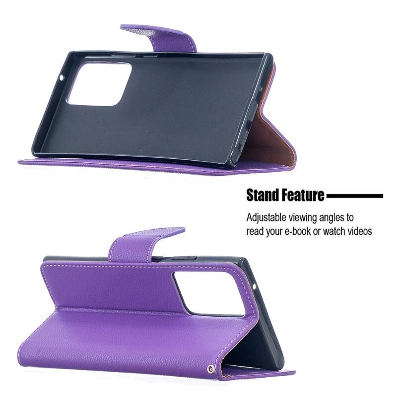 Για Samsung Galaxy Note20 Ultra Litchi Υφή καθαρό χρώμα οριζόντια Flip δερμάτινη θήκη με θήκη & υποδοχές για κάρτες & πορτοφόλι & κορδόνι (μωβ)