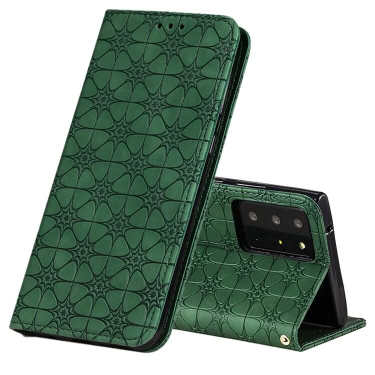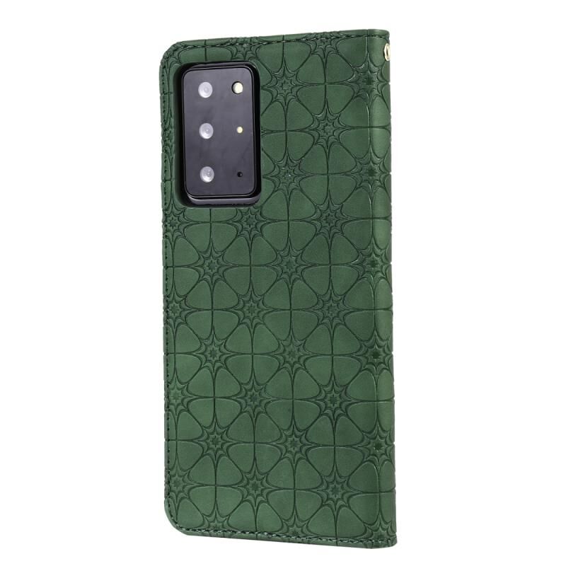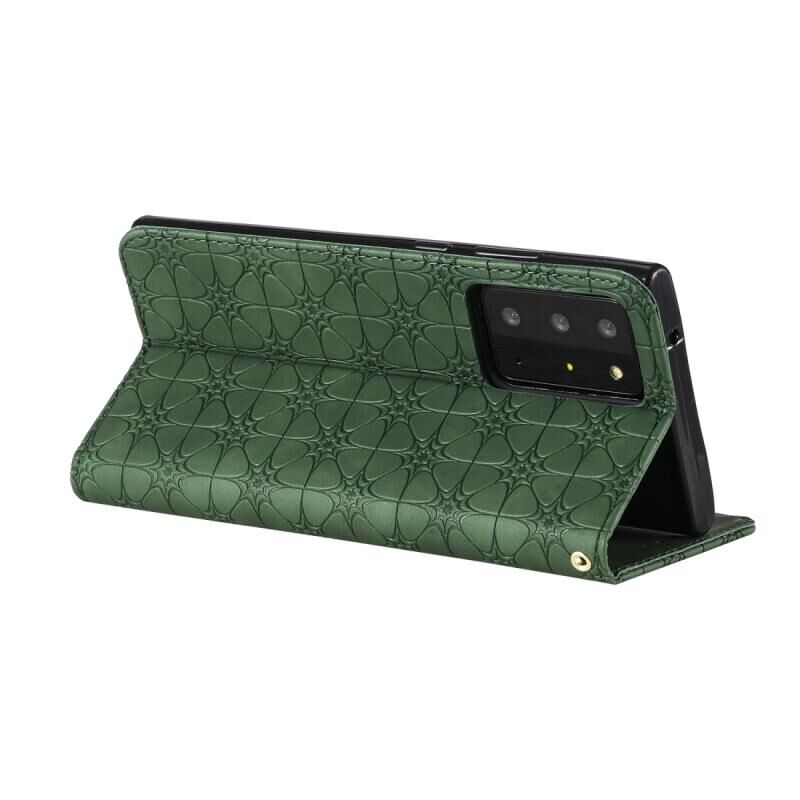 Θήκη Samsung Galaxy Note20 Ultra με μαγνητικό κλείσιμο, δερμάτινη, οριζόντια, με ανάγλυφο σχέδιο λουλουδιών, βάση στήριξης & θήκες για κάρτες (Σκούρο Μπλε)