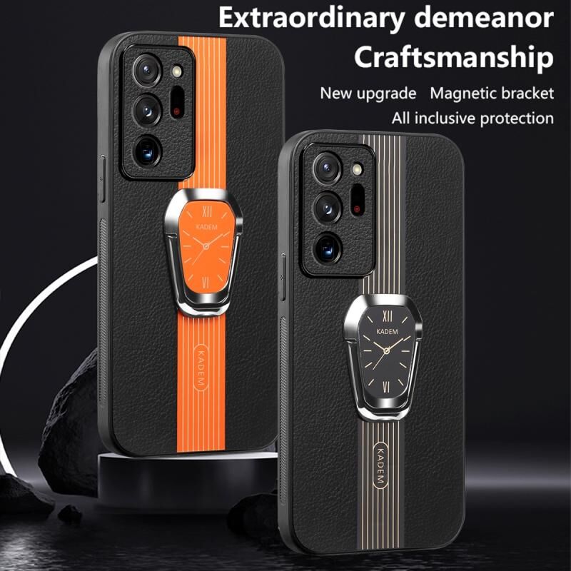 Θήκη κινητού Samsung Galaxy Note20 Ultra με μαγνητικό δέρμα Litchi και βάση στήριξης (Πορτοκαλί)