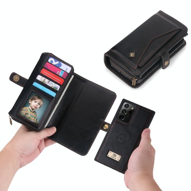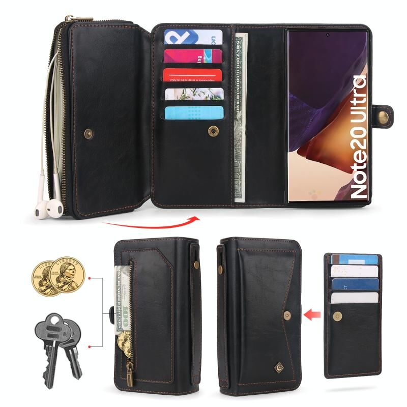 Για Samsung Galaxy Note20 Ultra Πολυλειτουργικό φερμουάρ πορτοφόλι δερμάτινη θήκη τηλεφώνου (Μαύρο)