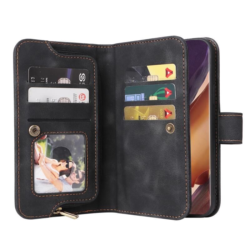 Για Samsung Galaxy Note20 Ultra πολυλειτουργική κάρτα Slot φερμουάρ πορτοφόλι δερμάτινη θήκη τηλεφώνου (μαύρο)