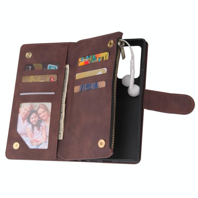 Για Samsung Galaxy Note20 Ultra πολυλειτουργική ρετρό παγωμένη οριζόντια Flip δερμάτινη θήκη με υποδοχή κάρτας & θήκη & φερμουάρ πορτοφόλι & κορνίζα φωτογραφιών & κορδόνι (καφέ)
