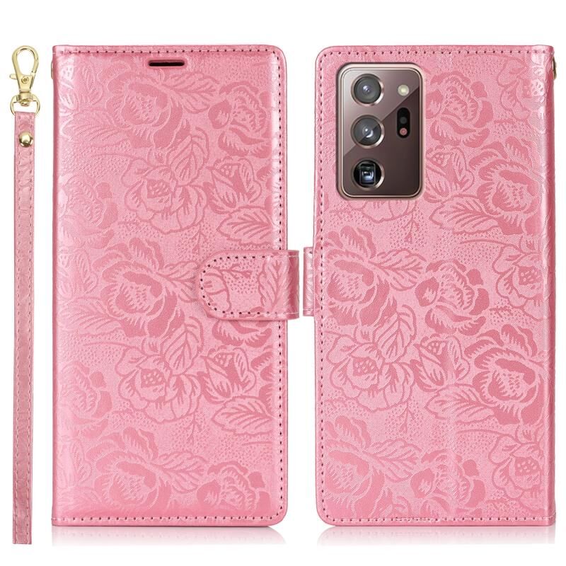 Θήκη τηλεφώνου Samsung Galaxy Note20 Ultra με δερμάτινο σχέδιο από παιώνιες (Μαύρο)