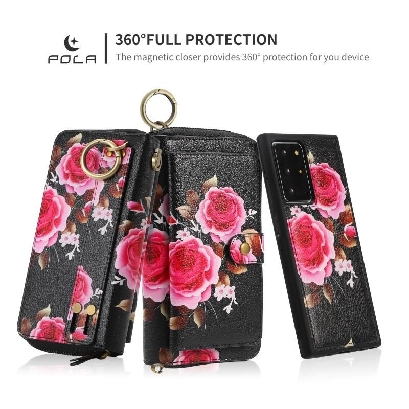 Θήκη τηλεφώνου Samsung Galaxy Note20 Ultra POLA Flower Πολυλειτουργική με φερμουάρ από δέρμα (Μαύρο)