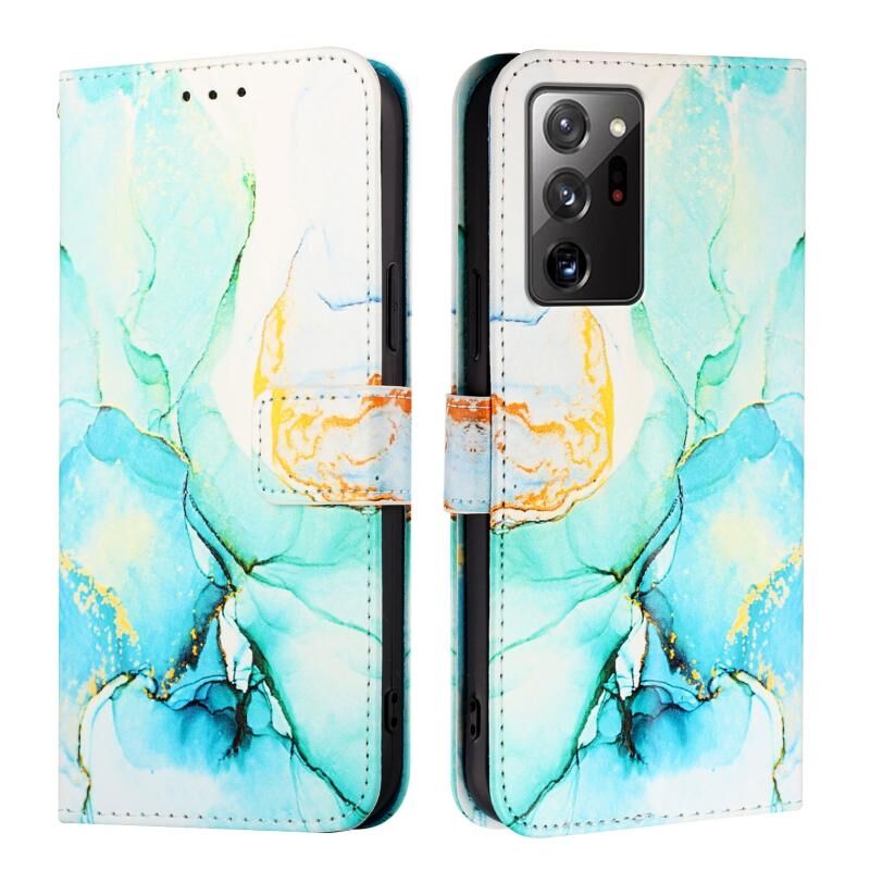 Θήκη τηλεφώνου Samsung Galaxy Note20 Ultra PT003 από δέρμα με σχέδιο μάρμαρου και πτυσσόμενο καπάκι (Λευκό-Μωβ)