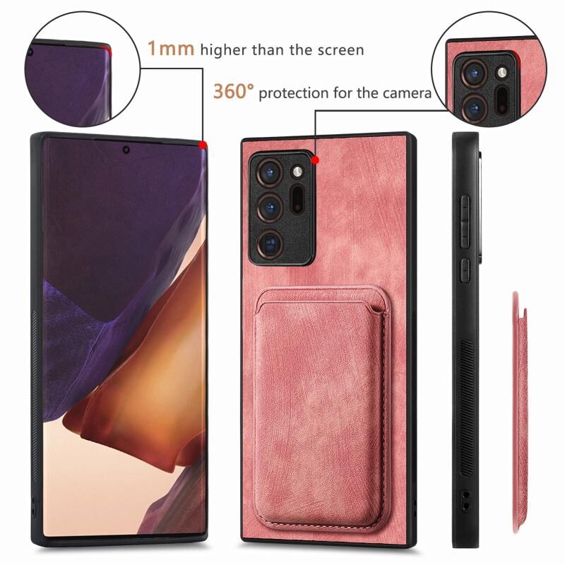 Για Samsung Galaxy Note20 Ultra Retro δερμάτινη τσάντα κάρτα μαγνητική θήκη τηλεφώνου (ροζ)