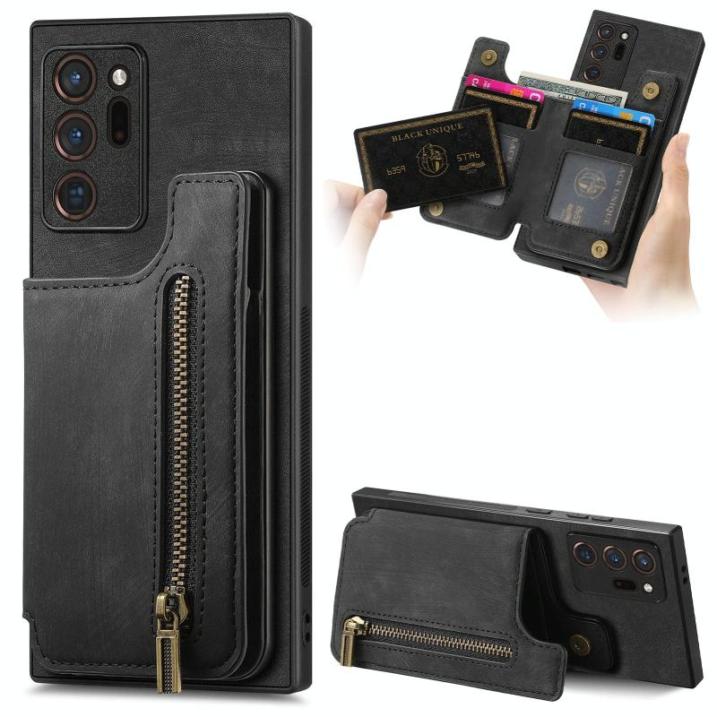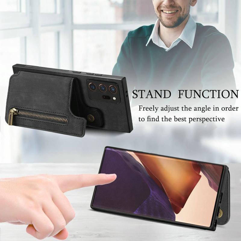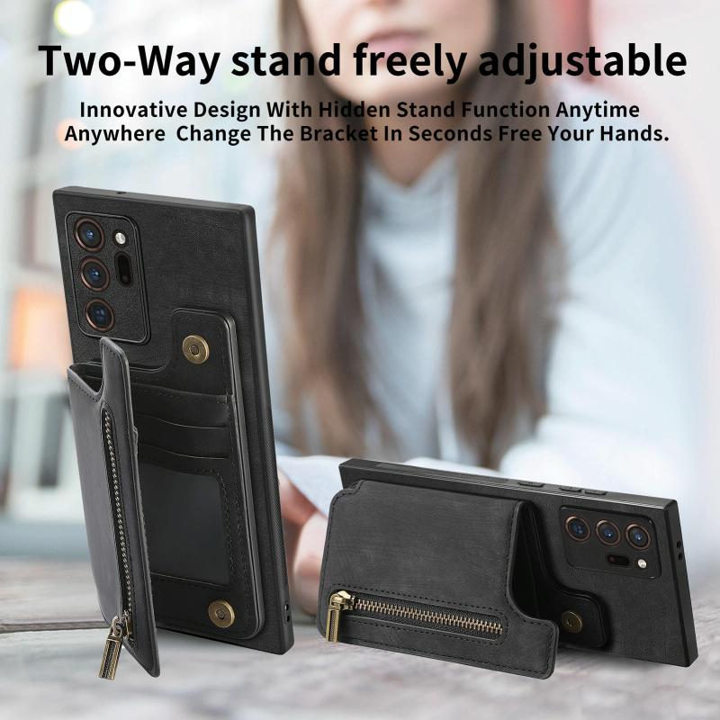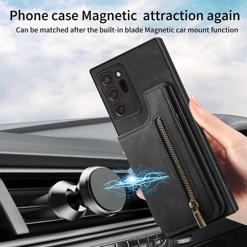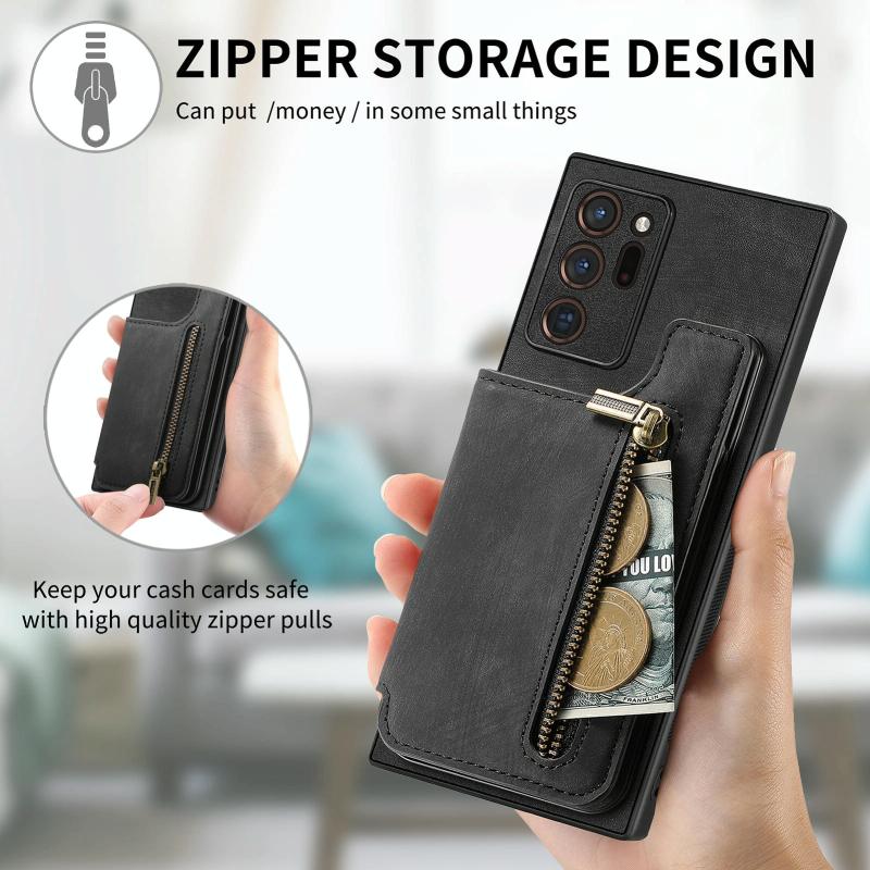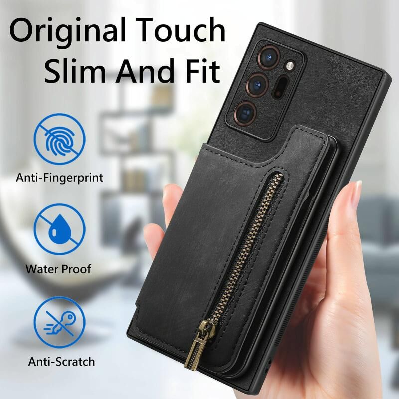 2. Λειτουργία Πορτοφολιού με Φερμουάρ: Η δερμάτινη θήκη είναι εξοπλισμένη με υποδοχές για κάρτες για την τοποθέτηση καρτών και ενός μικρού ποσού μετρητών.