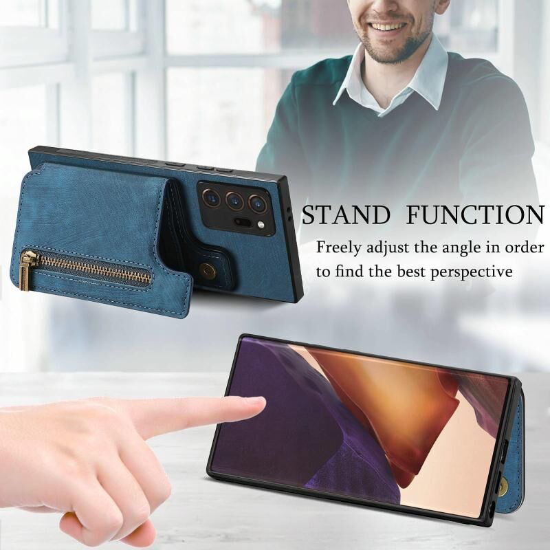 Για Samsung Galaxy Note20 Ultra Retro δέρμα φερμουάρ πορτοφόλι πίσω θήκη τηλεφώνου (μπλε)