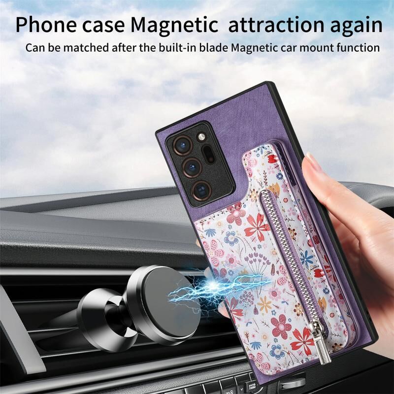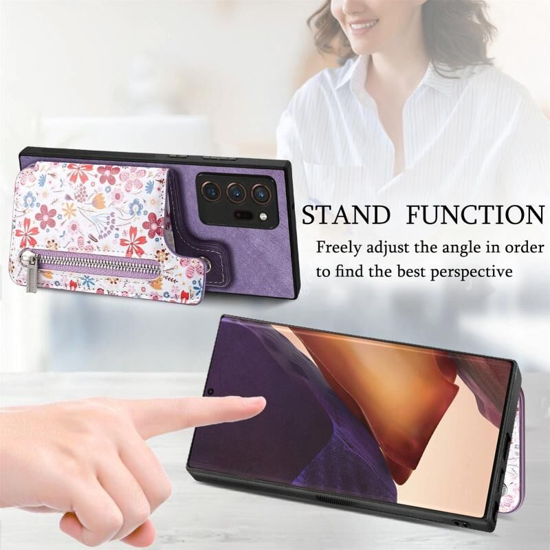 Για Samsung Galaxy Note20 Ultra Retro ζωγραφισμένο φερμουάρ πορτοφόλι πίσω υπόθεση τηλεφώνου (μωβ)