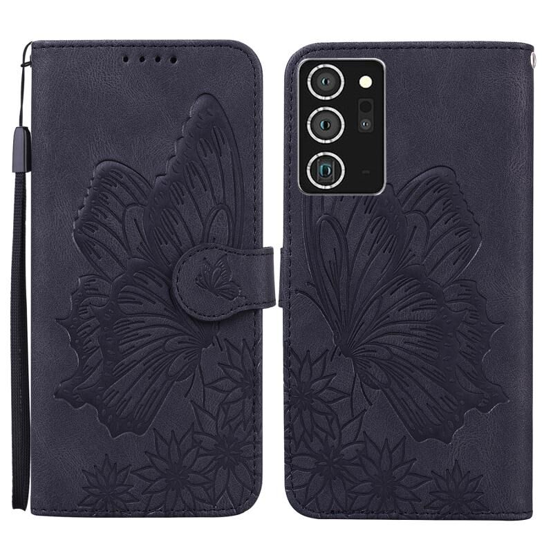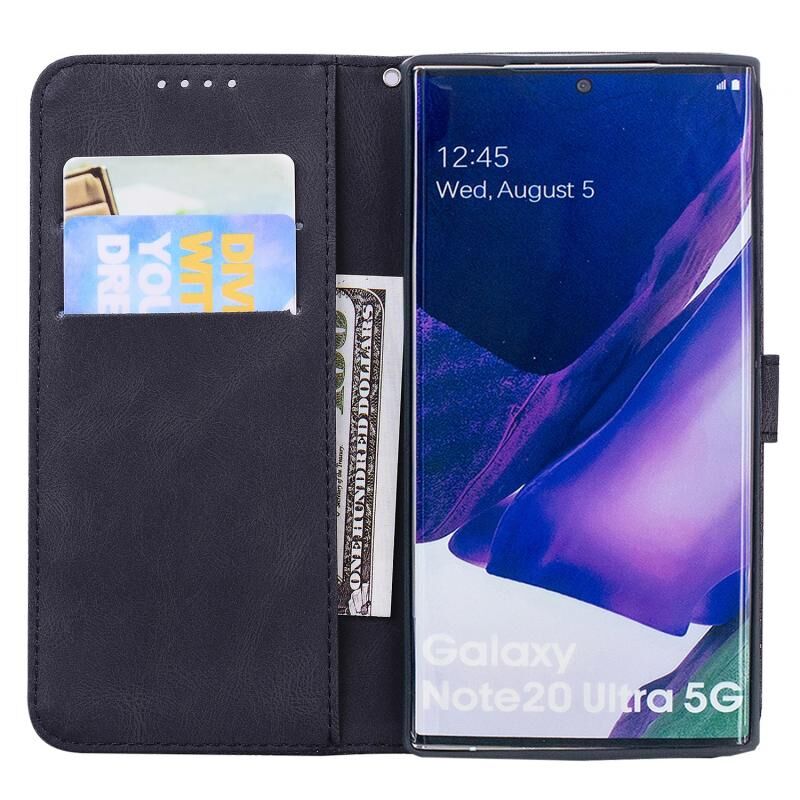 Θήκη Samsung Galaxy Note20 Ultra Retro με υφή δέρματος, ανάγλυφα σχέδια πεταλούδων, οριζόντια, από δέρμα με βάση για κάρτες & πορτοφόλι (Καφέ)