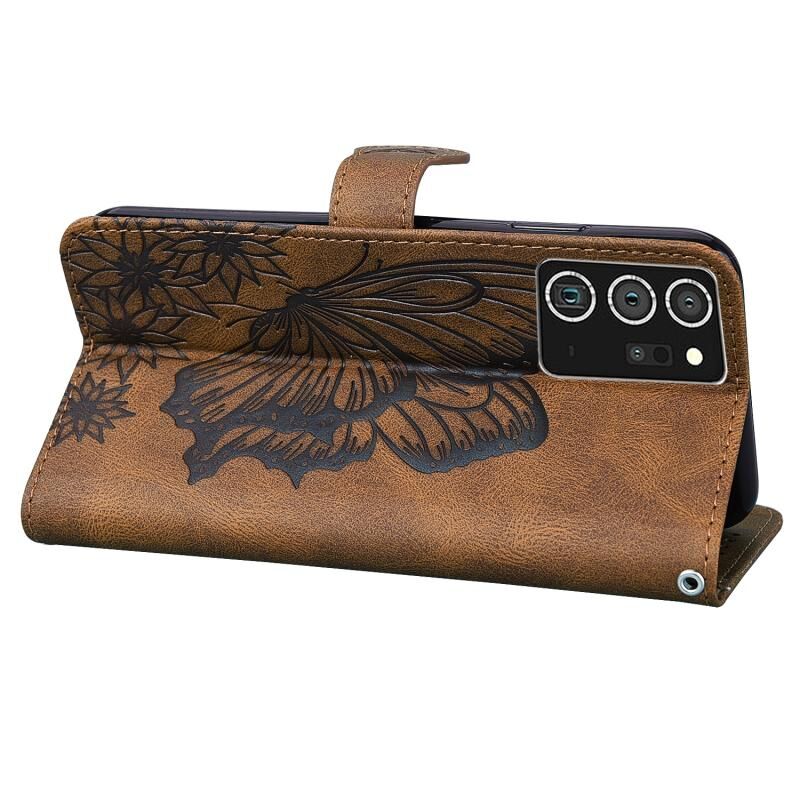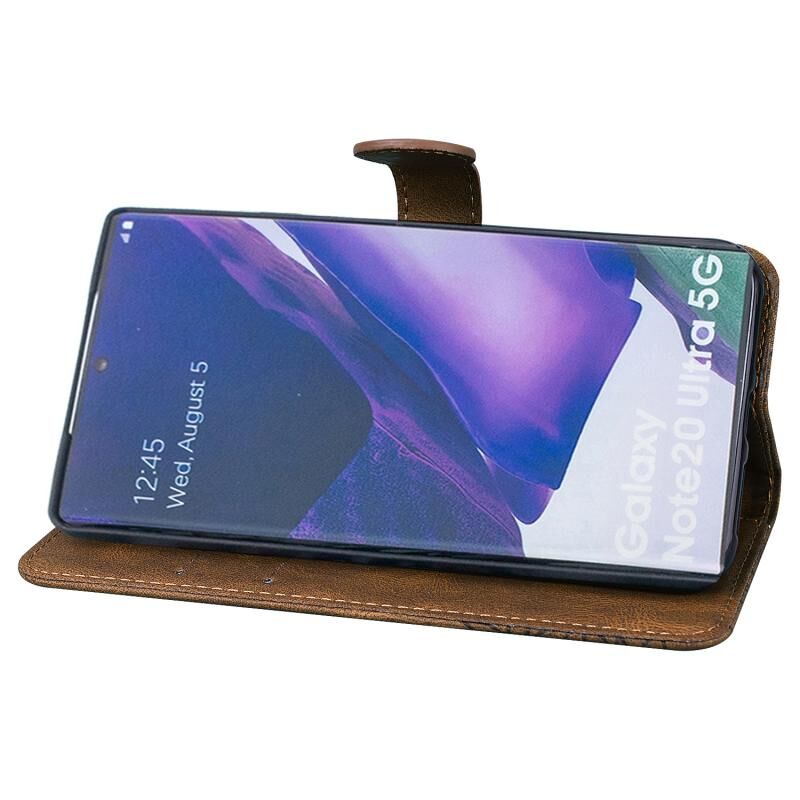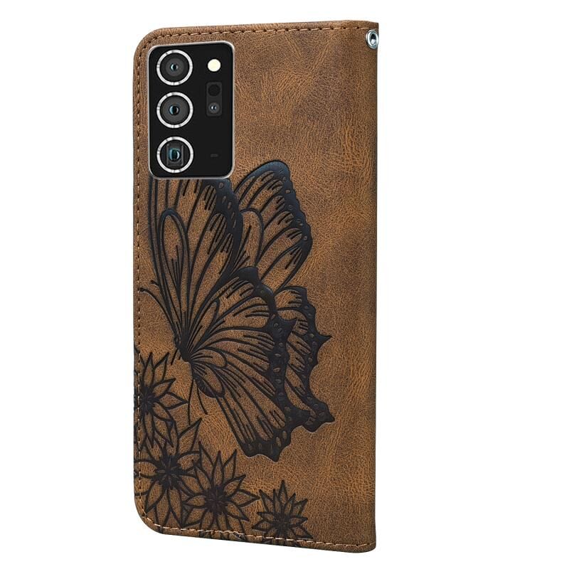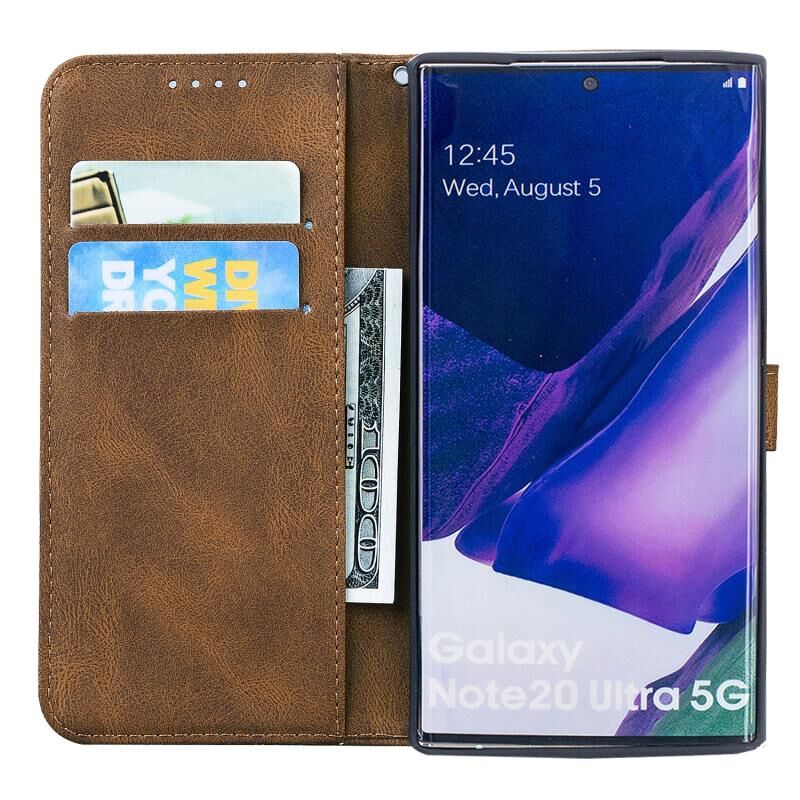 Θήκη Samsung Galaxy Note20 Ultra Retro με υφή δέρματος, ανάγλυφα σχέδια πεταλούδων, οριζόντια, από δέρμα με βάση για κάρτες & πορτοφόλι (Καφέ)