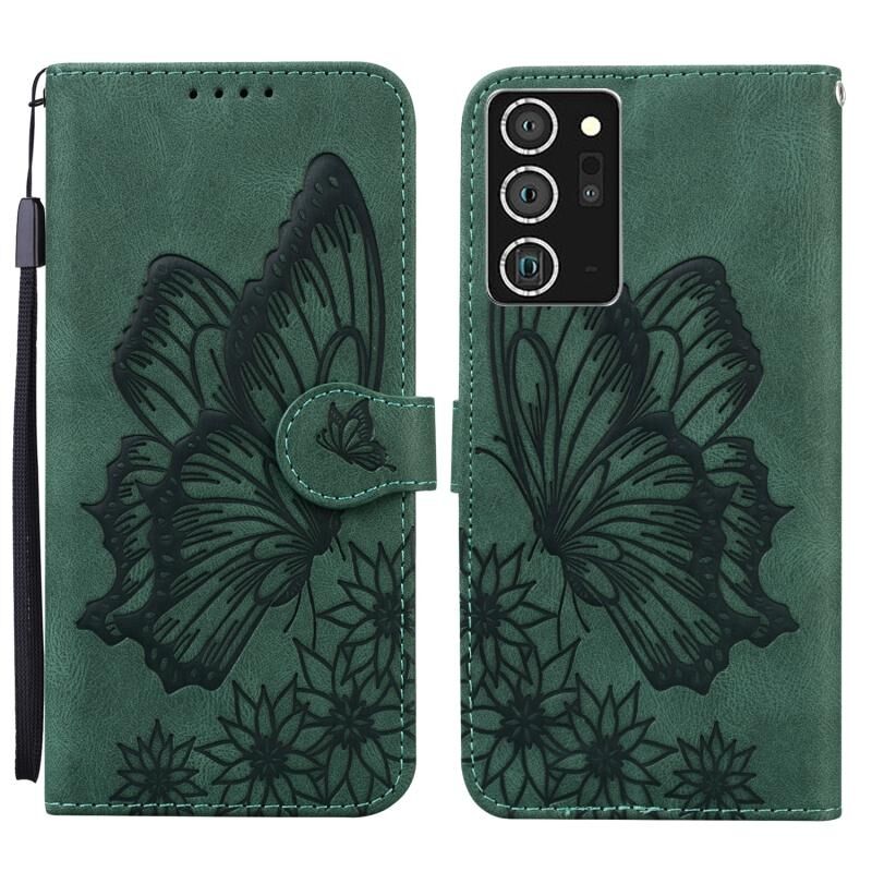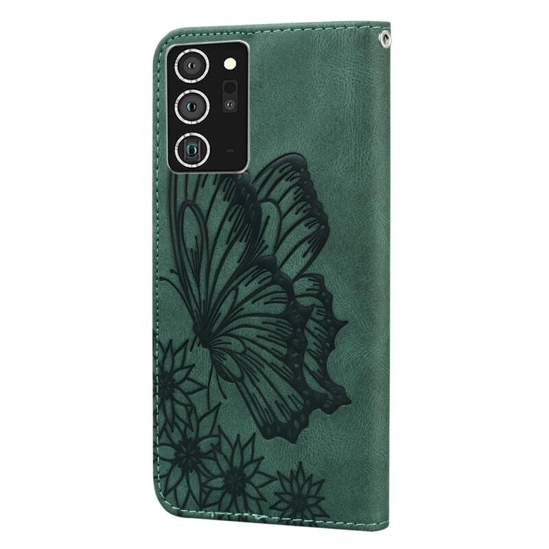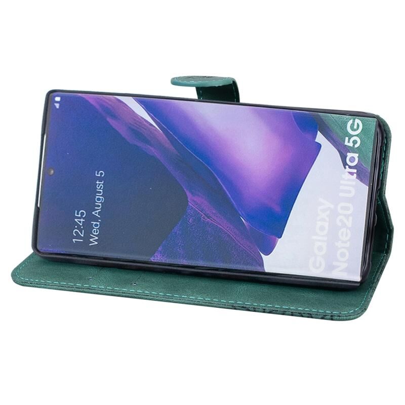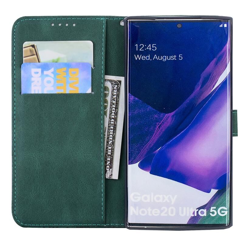 Θήκη Samsung Galaxy Note20 Ultra Retro με υφή δέρματος, ανάγλυφα σχέδια πεταλούδων, οριζόντια, από δέρμα με βάση για κάρτες & πορτοφόλι (Καφέ)