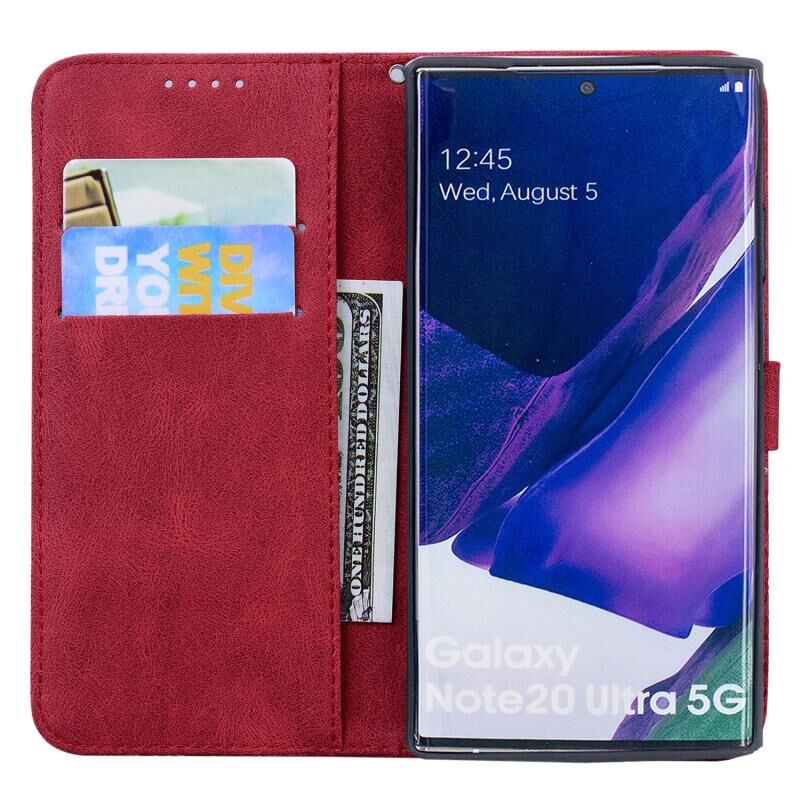 Θήκη Samsung Galaxy Note20 Ultra Retro με υφή δέρματος, ανάγλυφα σχέδια πεταλούδων, οριζόντια, από δέρμα με βάση για κάρτες & πορτοφόλι (Καφέ)