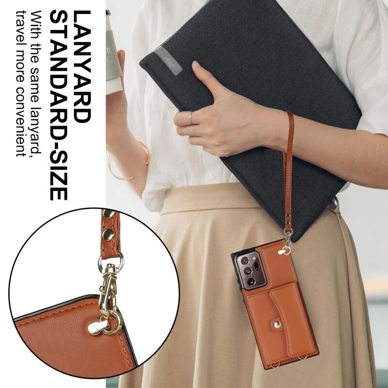 Για Samsung Galaxy Note20 Ultra RFID Slot κάρτα δερμάτινη θήκη τηλεφώνου με μακρύ κορδόνι (καφέ)