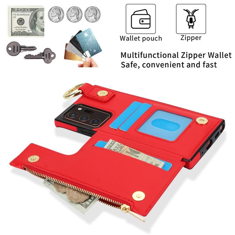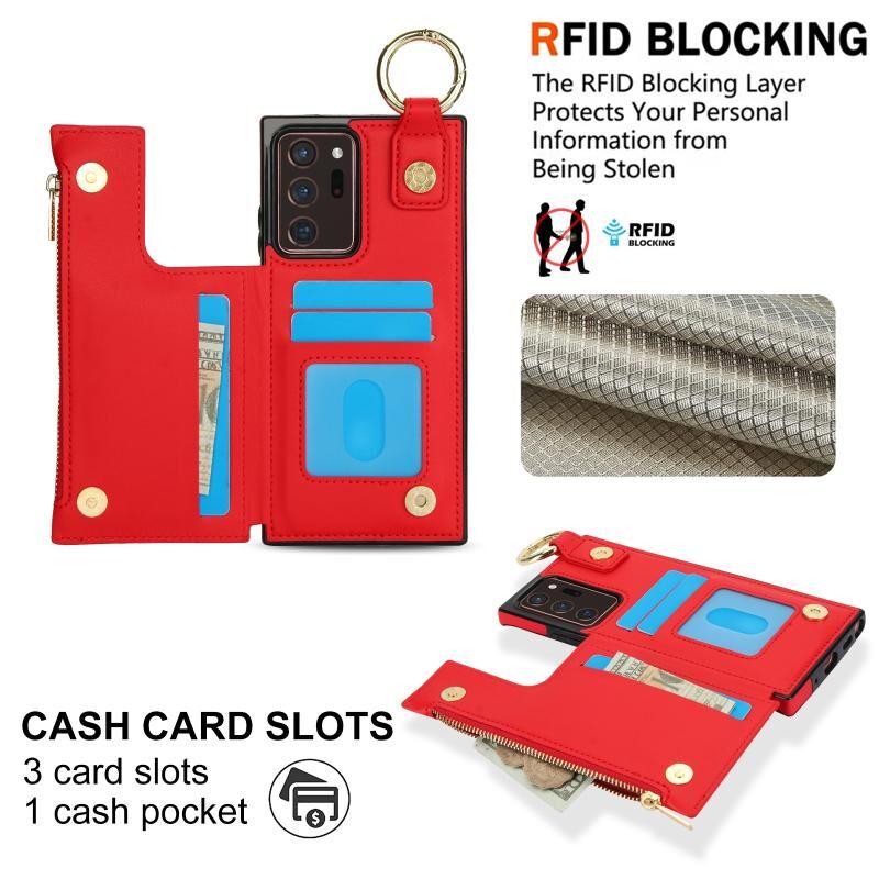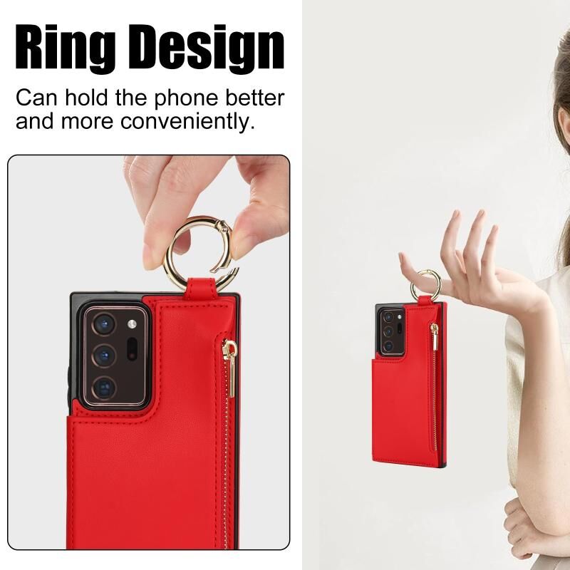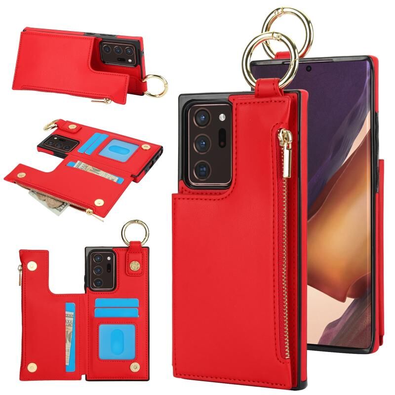 Για Samsung Galaxy Note20 Ultra RFlD Anti-theft Διπλό πόρπη δαχτυλίδι φερμουάρ κάρτα υπόθεση τηλεφώνου (κόκκινο)