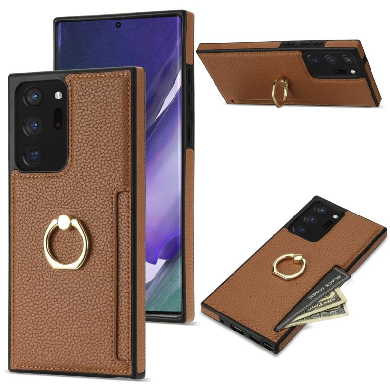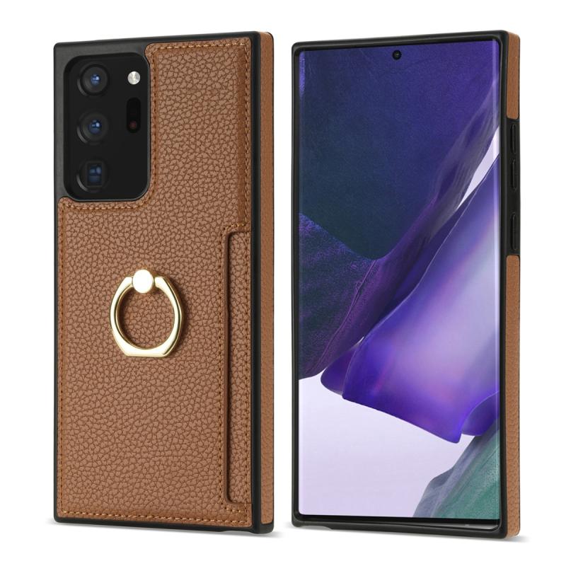 For Samsung Galaxy Note20 Ultra Ring Card Litchi Leather Back Phone Case(Brown)