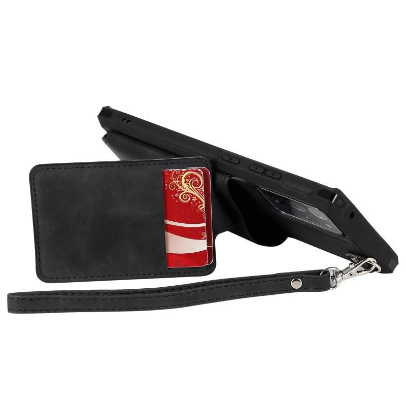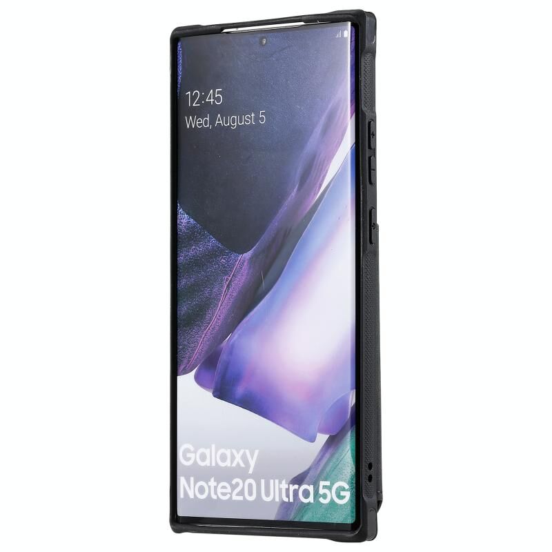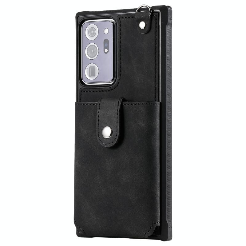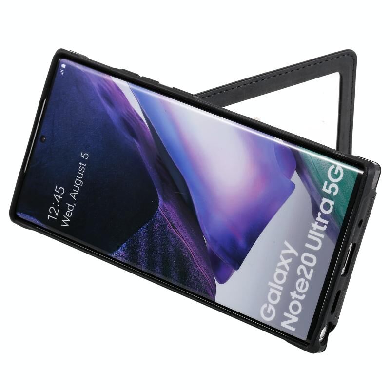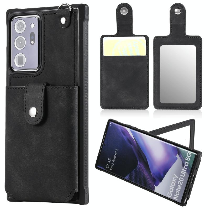 For Samsung Galaxy Note20 Ultra Shockproof Protective Case with Mirror & Card Slot & Short Lanyard(Black)