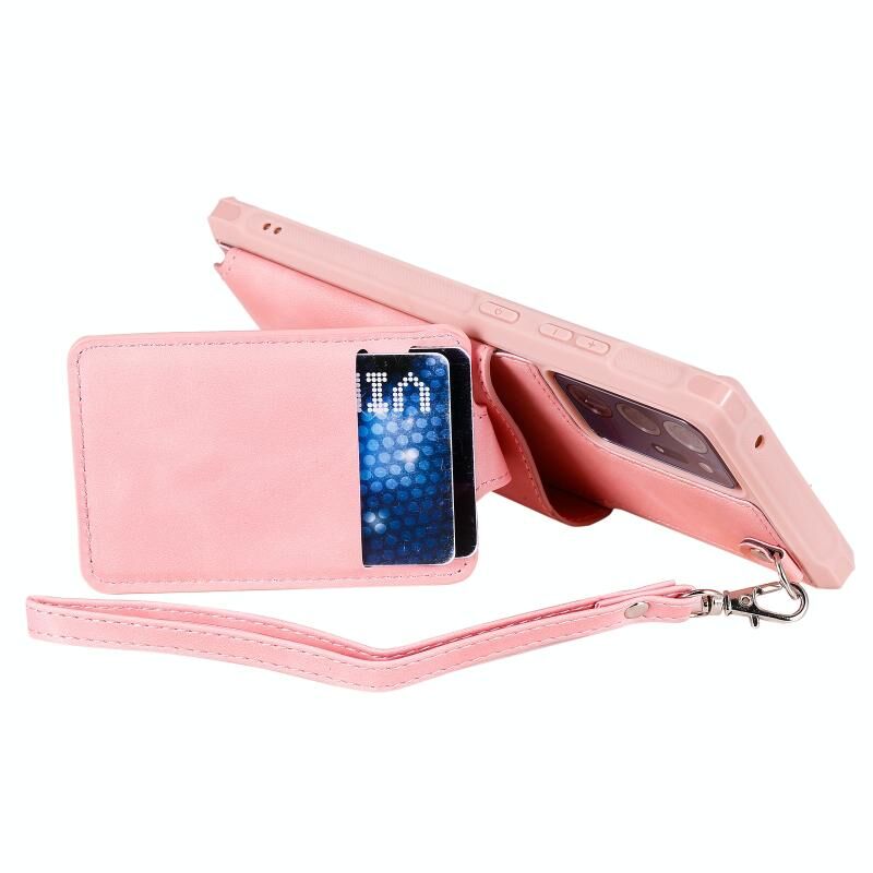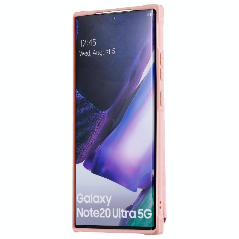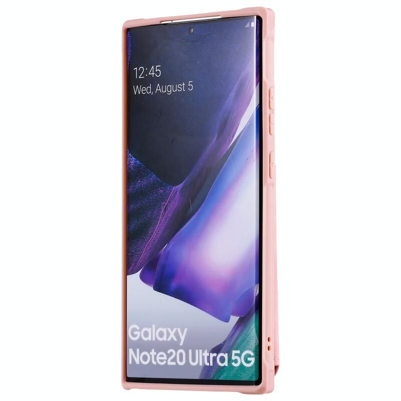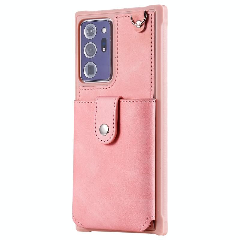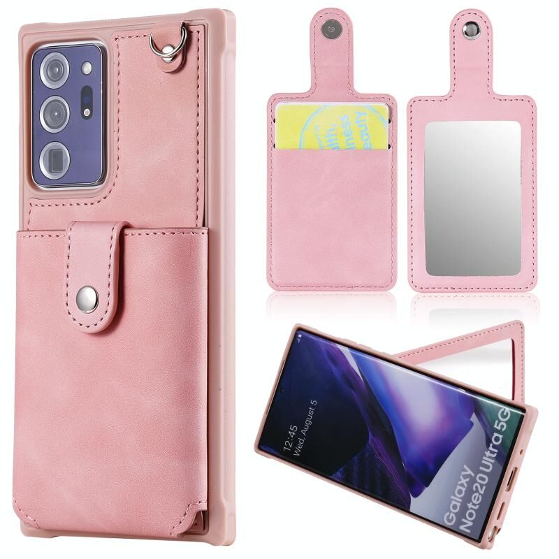 For Samsung Galaxy Note20 Ultra Shockproof Protective Case with Mirror & Card Slot & Short Lanyard(Pink)