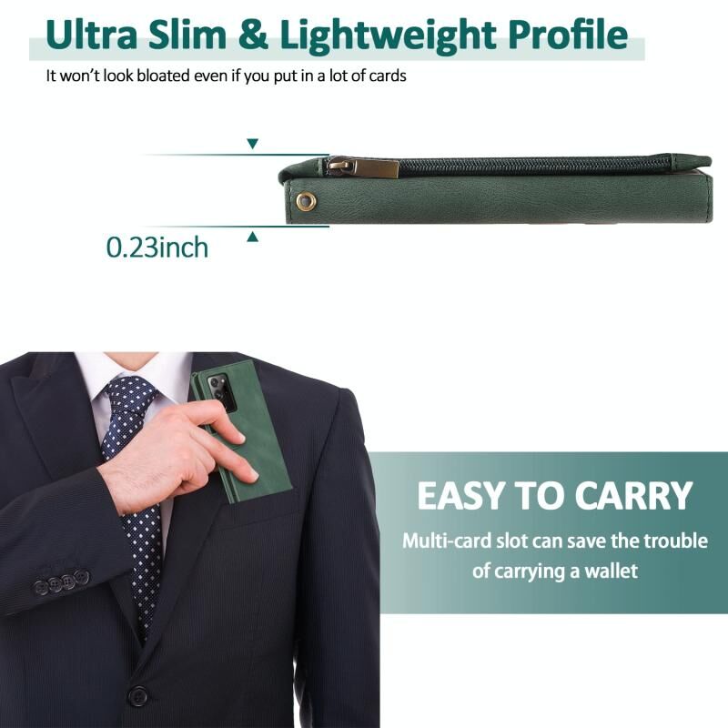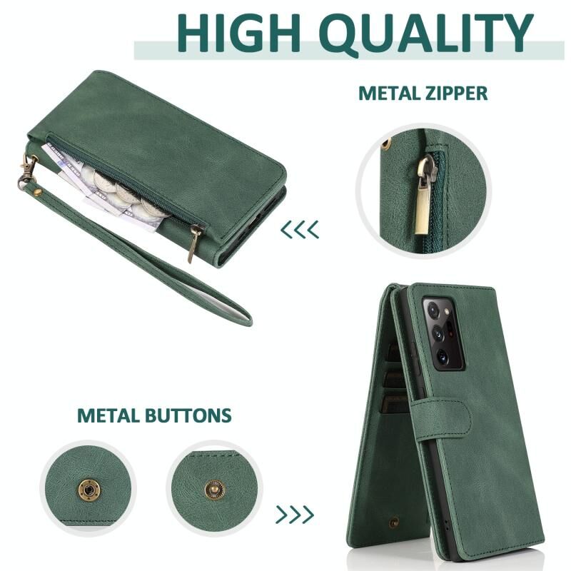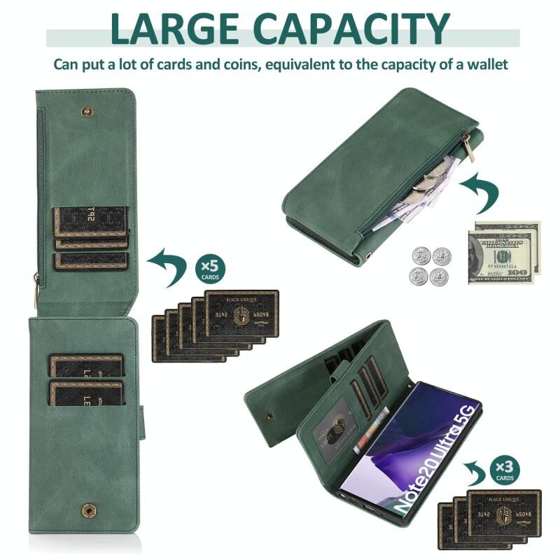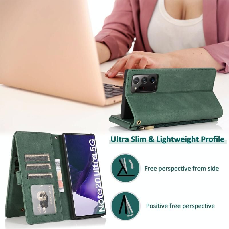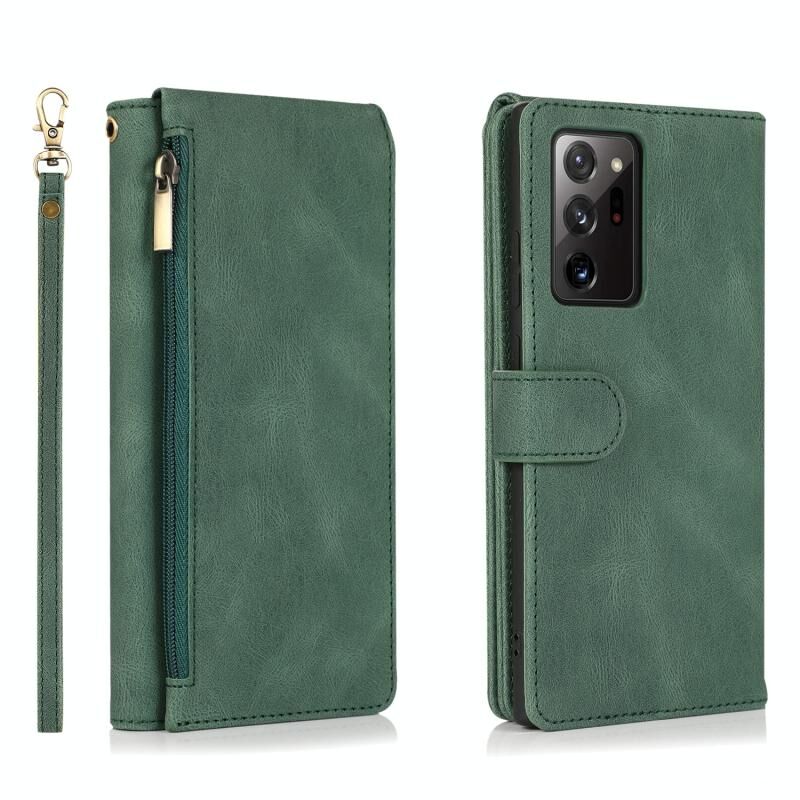 Για Samsung Galaxy Note20 Ultra Skin-feel Crazy Horse υφή φερμουάρ τσάντα πορτοφόλι οριζόντια Flip δερμάτινη θήκη με κάτοχο & υποδοχές για κάρτες & πορτοφόλι & Lanyard (σκούρο πράσινο)