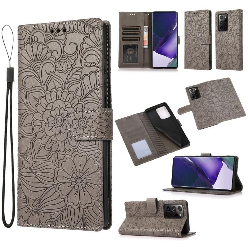 Για Samsung Galaxy Note20 Ultra Skin Feel ανάγλυφο ηλιοτρόπιο οριζόντια Flip δερμάτινη θήκη με υποδοχές για κάρτες & θήκες & πορτοφόλι & κορδόνι (γκρι)