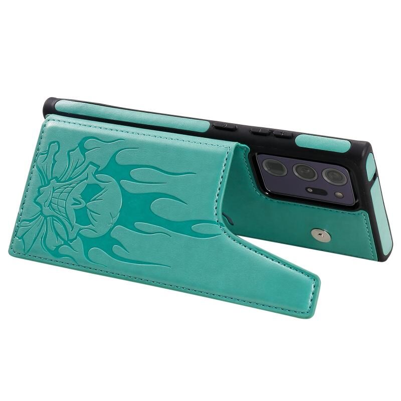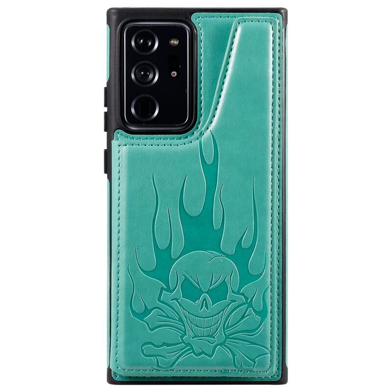 Θήκη προστασίας για Samsung Galaxy Note20 Ultra με ανάγλυφο σχέδιο κρανίου, αντικραδασμική, με βάση στήριξης & θήκες καρτών & πορτοφόλι (Μπλε)