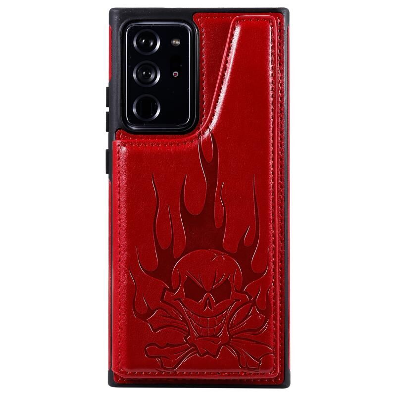 Θήκη προστασίας για Samsung Galaxy Note20 Ultra με ανάγλυφο σχέδιο κρανίου, αντικραδασμική, με βάση στήριξης & θήκες καρτών & πορτοφόλι (Μπλε)