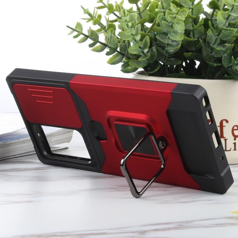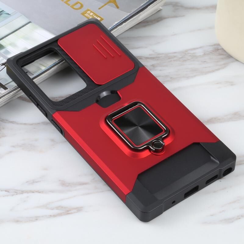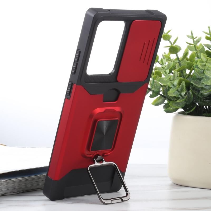 Για Samsung Galaxy Note20 Ultra Sliding Camera Cover Design PC + TPU Shockproof Case με θήκη δαχτυλιδιού & υποδοχή κάρτας (κόκκινο)