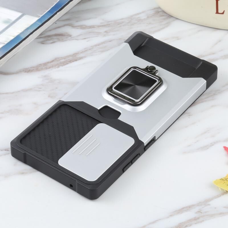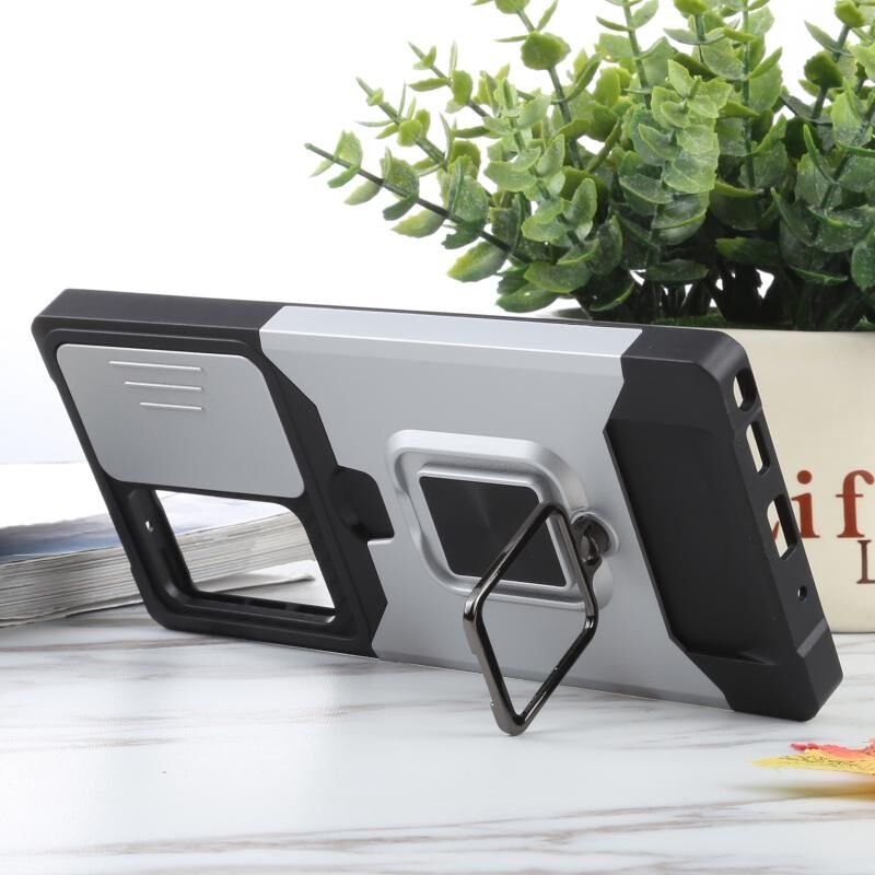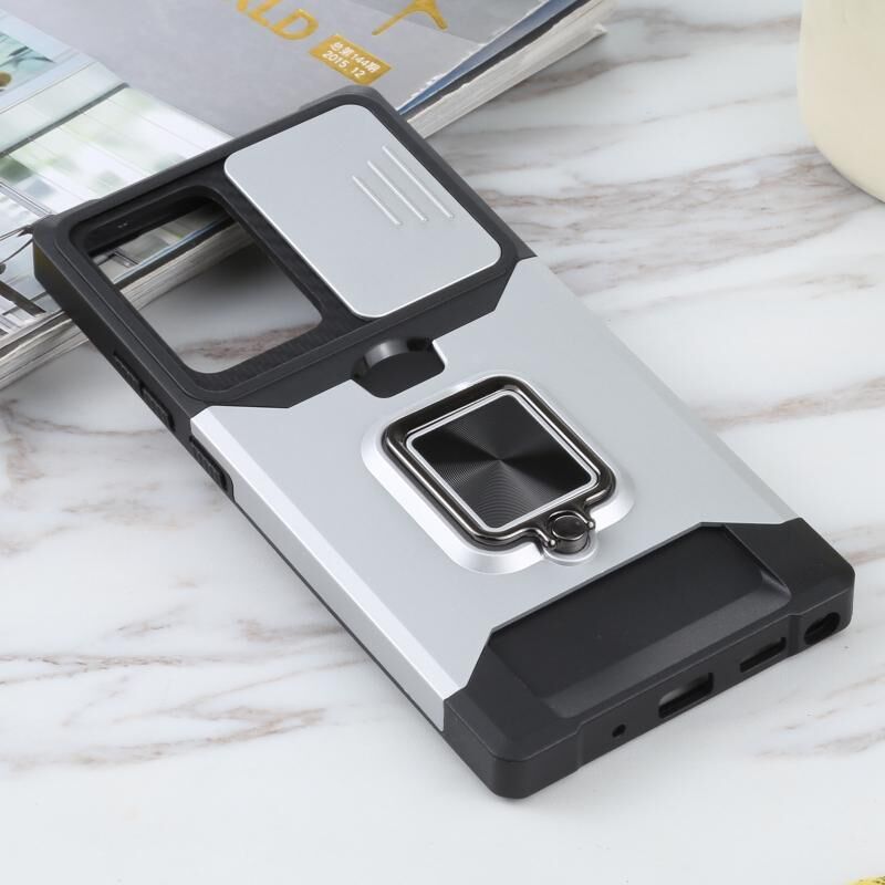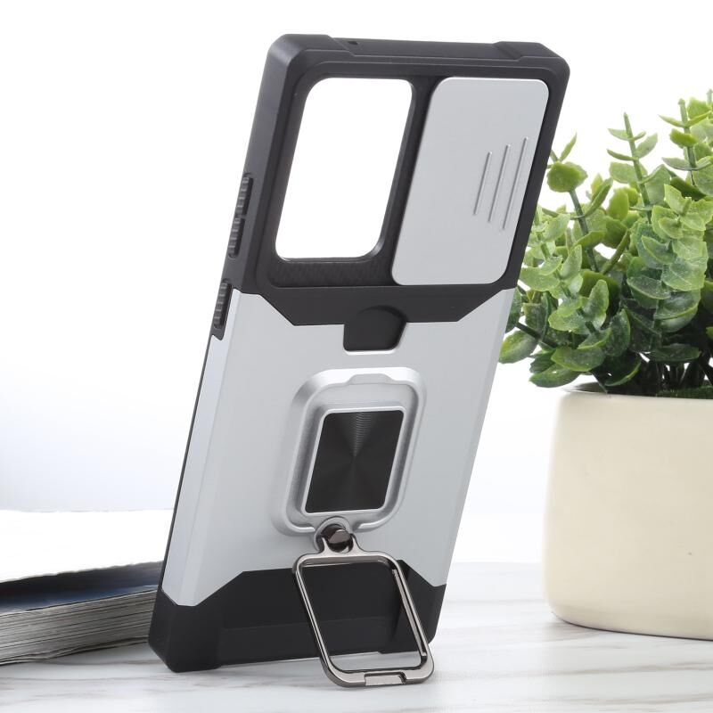 Για Samsung Galaxy Note20 Ultra Sliding Camera Cover Design PC + TPU Shockproof Case με θήκη δαχτυλιδιού & υποδοχή κάρτας (Ασημί)