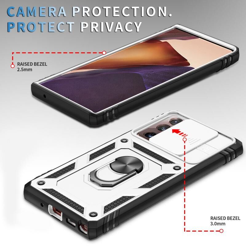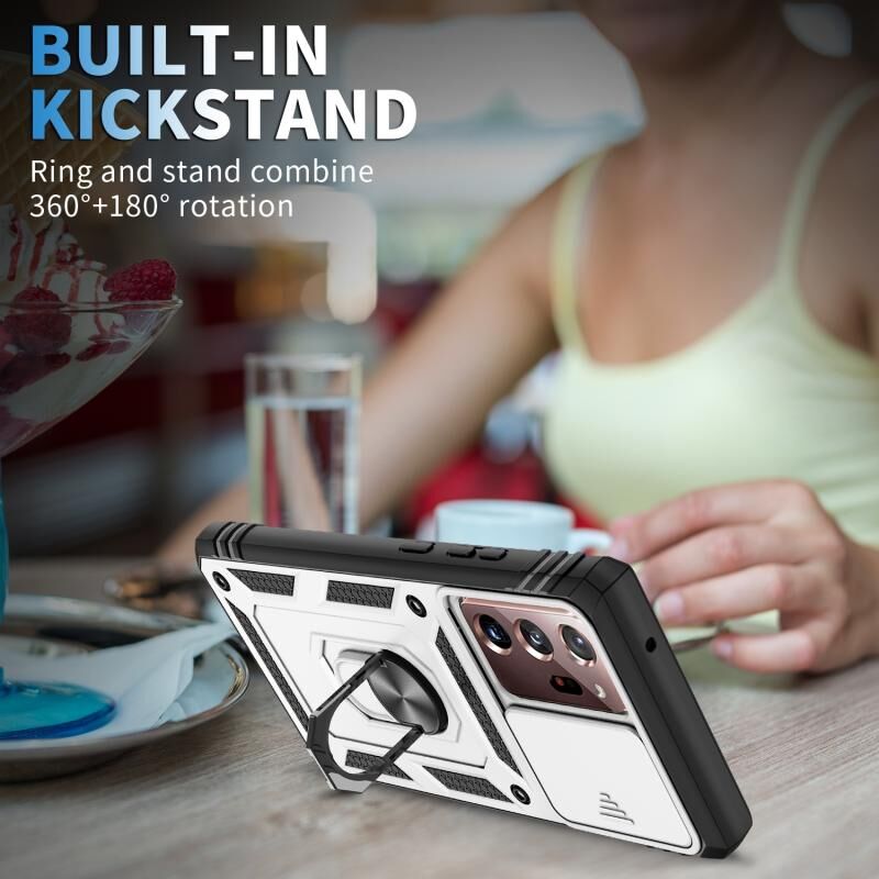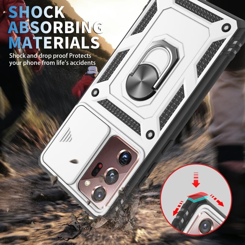 Θήκη κινητού τηλεφώνου Samsung Galaxy Note20 Ultra με ολισθαίνουσα κάλυψη κάμερας, TPU + PC (Λευκό + Μαύρο)