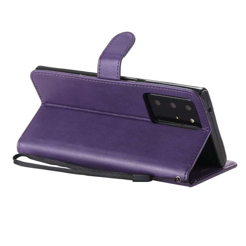 Για Samsung Galaxy Note20 Ultra Αμιγές χρώμα οριζόντια Flip PU δερμάτινη θήκη με θήκη & υποδοχές για κάρτες & πορτοφόλι & κορδόνι (μωβ)