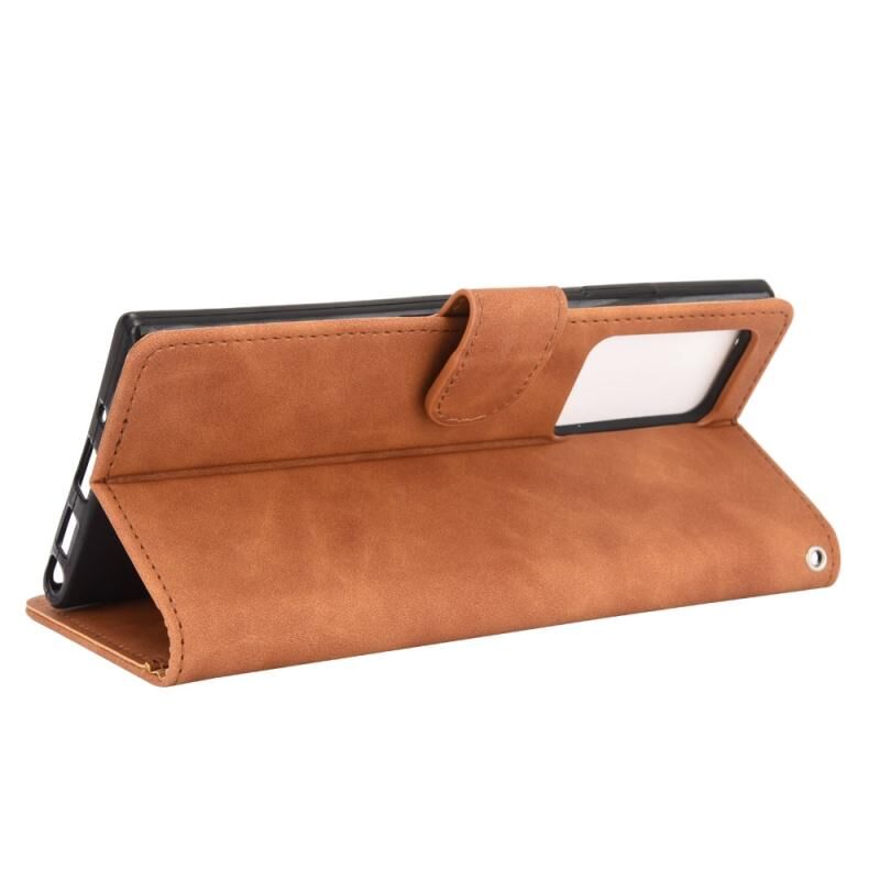 Για Samsung Galaxy Note20 Ultra Solid Color Skin Feel μαγνητική πόρπη οριζόντια Flip μοσχάρι υφή PU δέρμα υπόθεση με κάτοχο & υποδοχές για κάρτες & πορτοφόλι (καφέ)