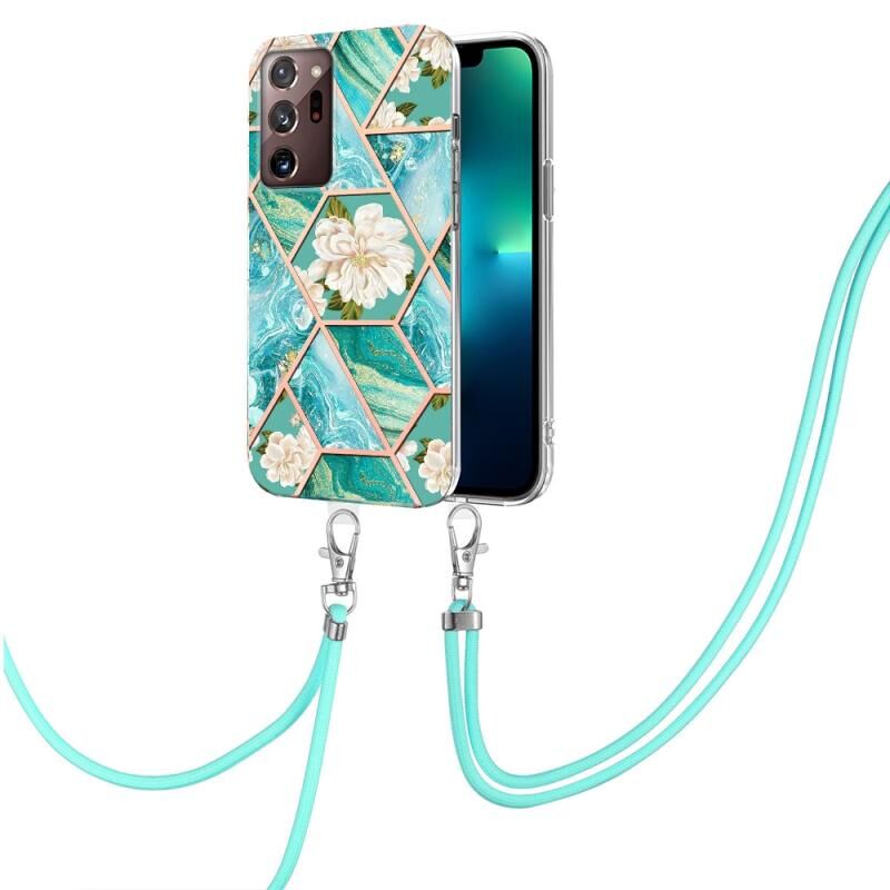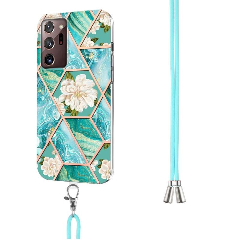 Θήκη τηλεφώνου TPU με σχέδιο μαρμάρου και λουλουδιών για Samsung Galaxy Note20 Ultra με κορδόνι (Ροζ Λουλούδι)