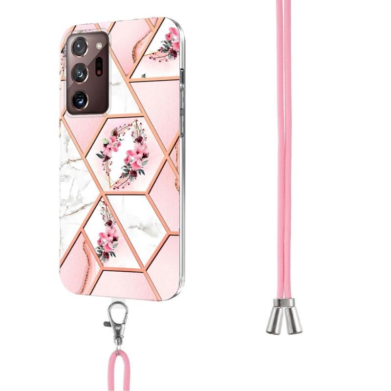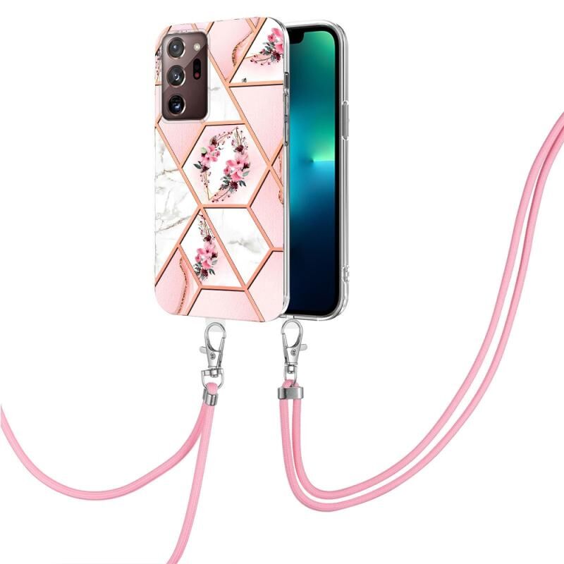 Θήκη τηλεφώνου TPU με σχέδιο μαρμάρου και λουλουδιών για Samsung Galaxy Note20 Ultra με κορδόνι (Ροζ Λουλούδι)