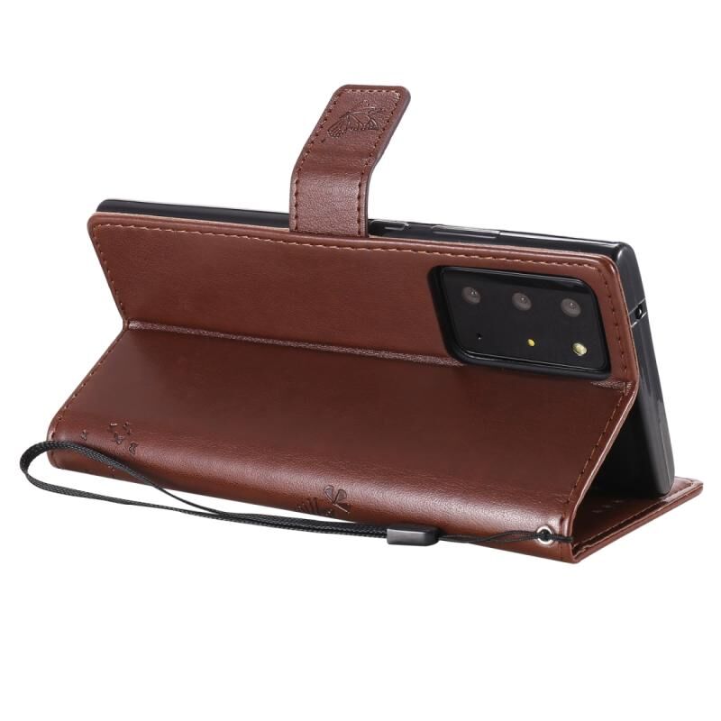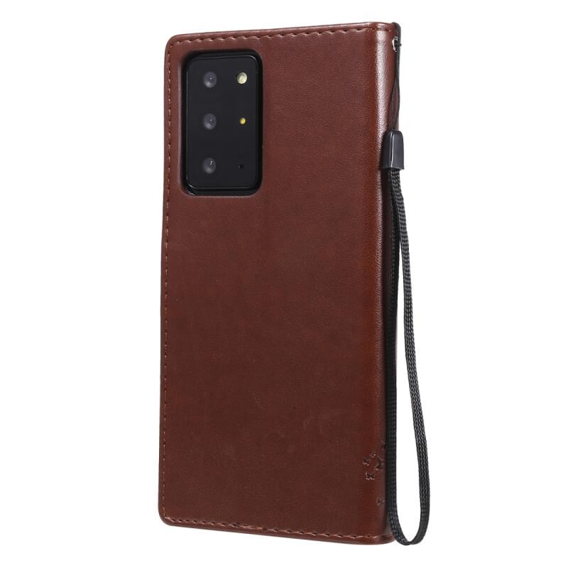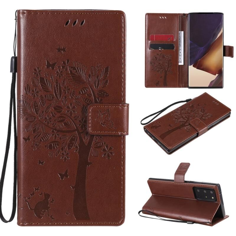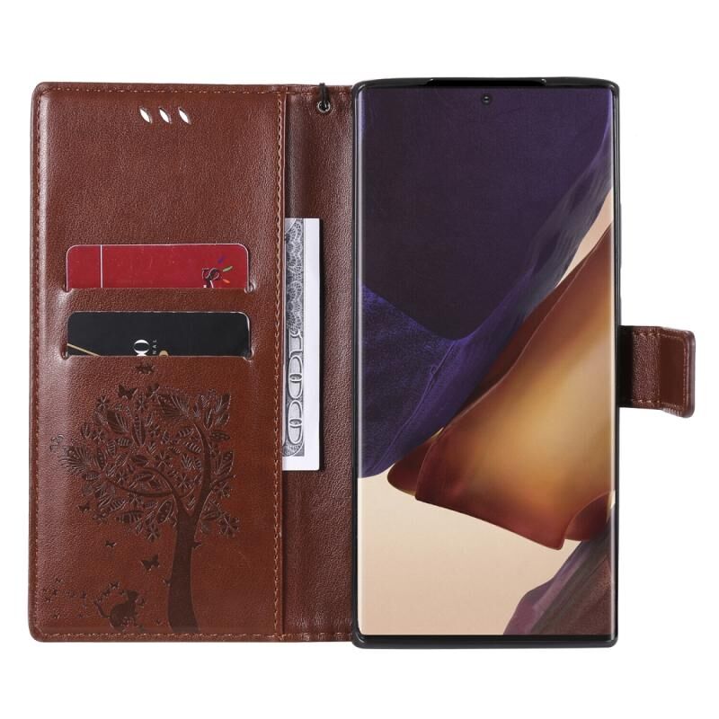 Θήκη Samsung Galaxy Note20 Ultra με σχέδιο Δέντρου & Γάτας, εκτυπωμένη με θερμοτύπηση, οριζόντια, από δερματίνη PU με βάση στήριξης & θήκες για κάρτες & πορτοφόλι & κορδόνι (Καφέ)