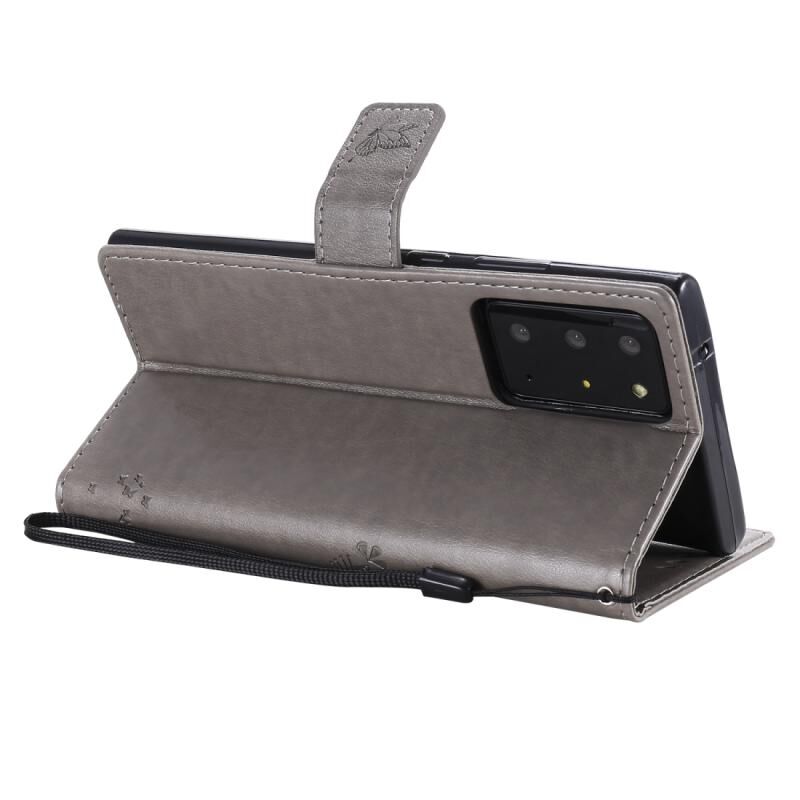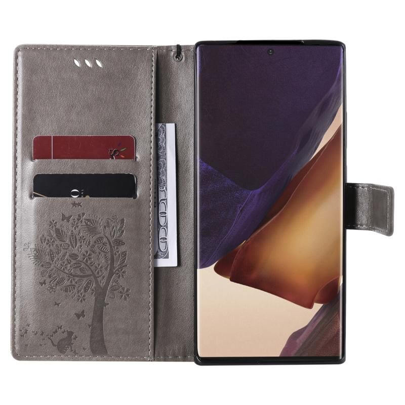 Θήκη Samsung Galaxy Note20 Ultra με σχέδιο Δέντρου & Γάτας, εκτυπωμένη με θερμοτύπηση, οριζόντια, από δερματίνη PU με βάση στήριξης & θήκες καρτών & πορτοφόλι & κορδόνι (Πράσινο)