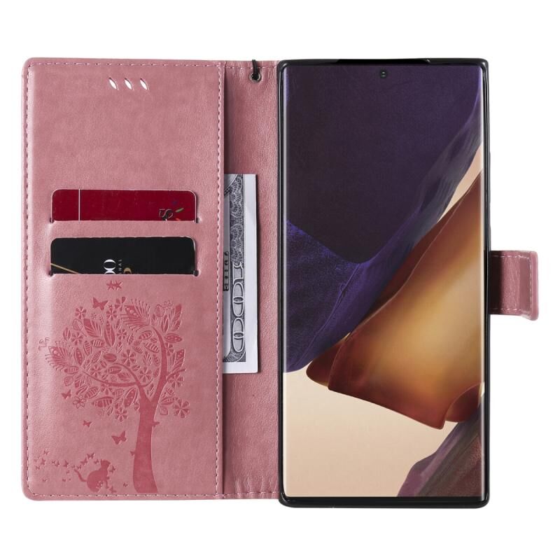 Θήκη Samsung Galaxy Note20 Ultra με σχέδιο Δέντρου & Γάτας, εκτυπωμένη με θερμοτύπηση, οριζόντια, από δερματίνη PU με βάση στήριξης & θήκες καρτών & πορτοφόλι & κορδόνι (Πράσινο)