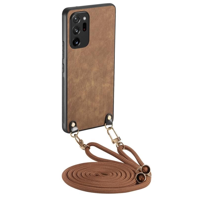 Για Samsung Galaxy Note20 Ultra Vintage δέρμα PC πίσω κάλυμμα τηλέφωνο υπόθεση με λουράκι σταυρού (καφέ)