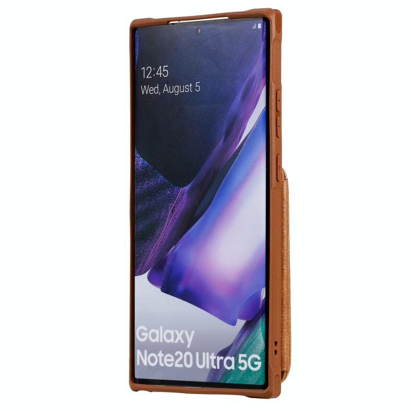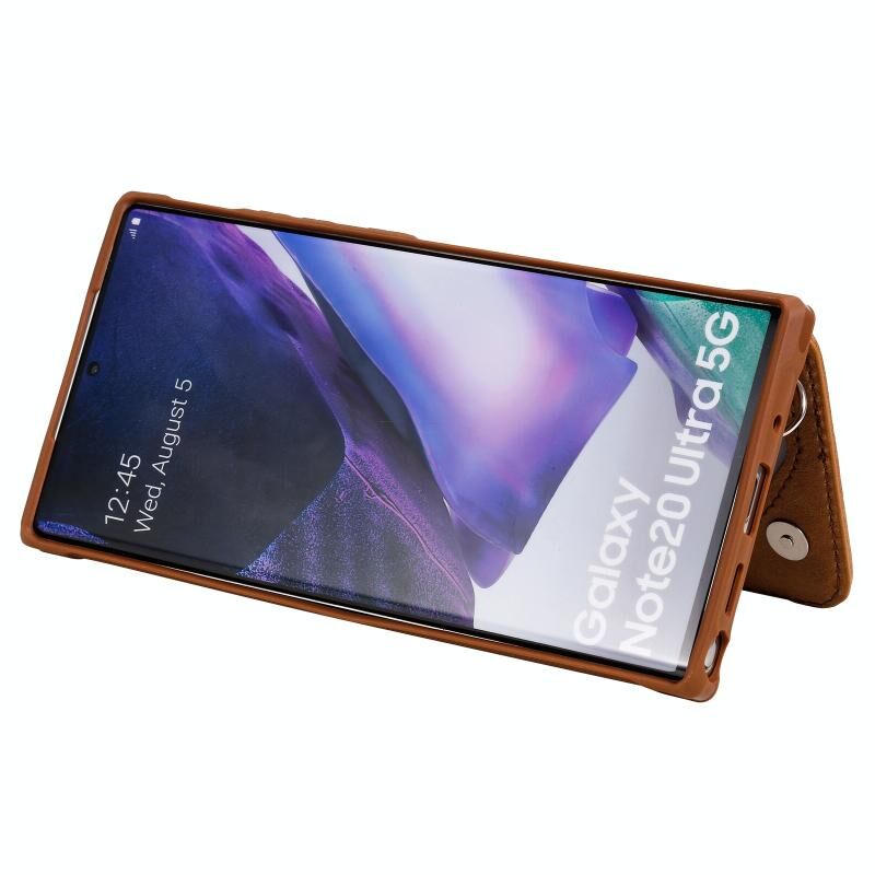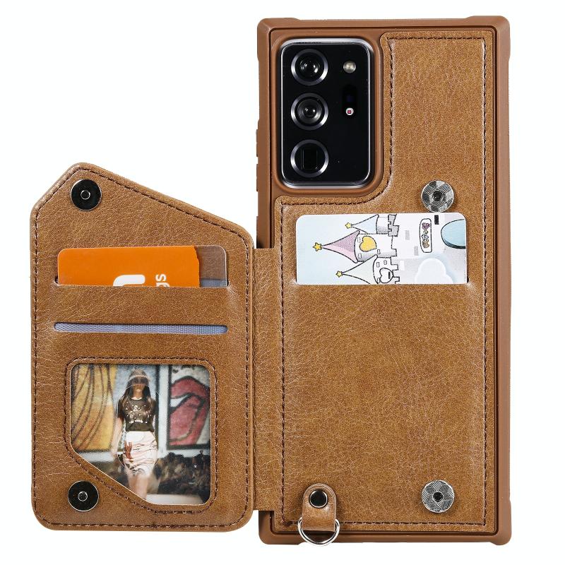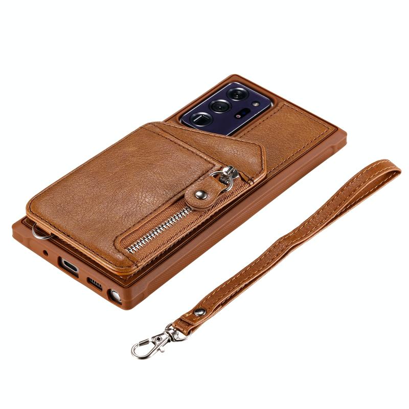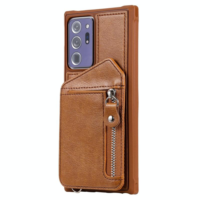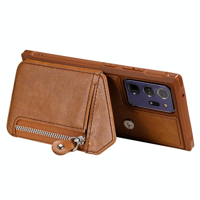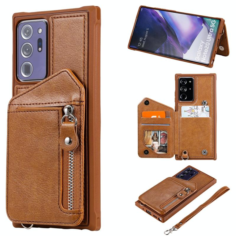 For Samsung Galaxy Note20 Ultra Zipper Double Buckle Shockproof Protective Case with Stand & Photo Holder & Wallet Function(Brown)