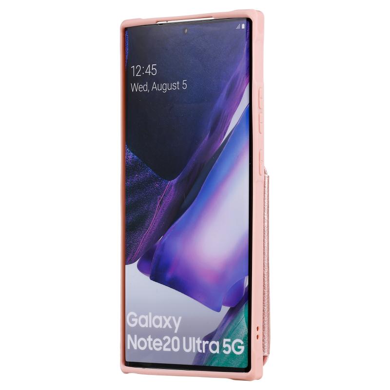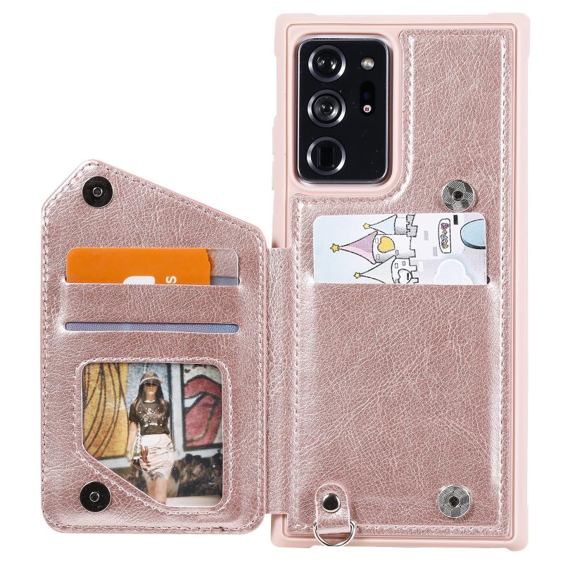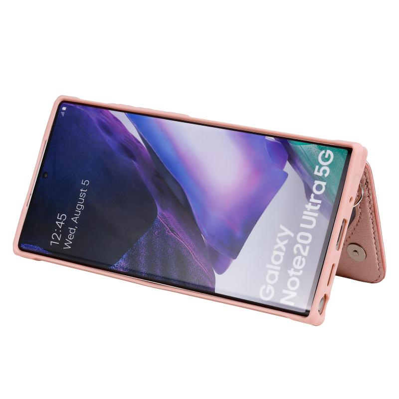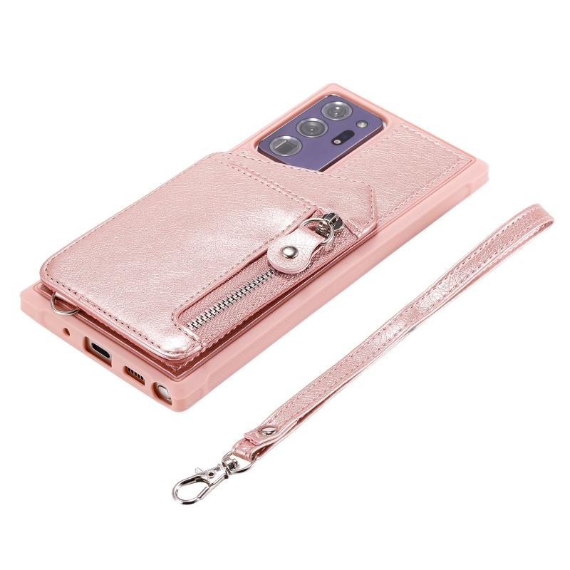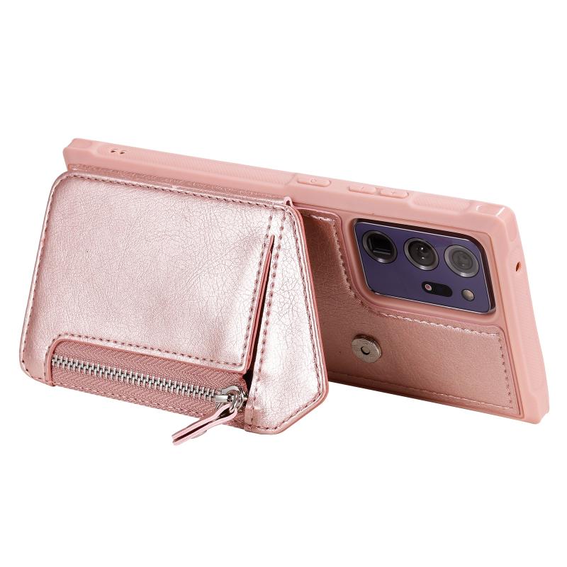 For Samsung Galaxy Note20 Ultra Zipper Double Buckle Shockproof Protective Case with Stand & Photo Holder & Wallet Function(Rose Gold)