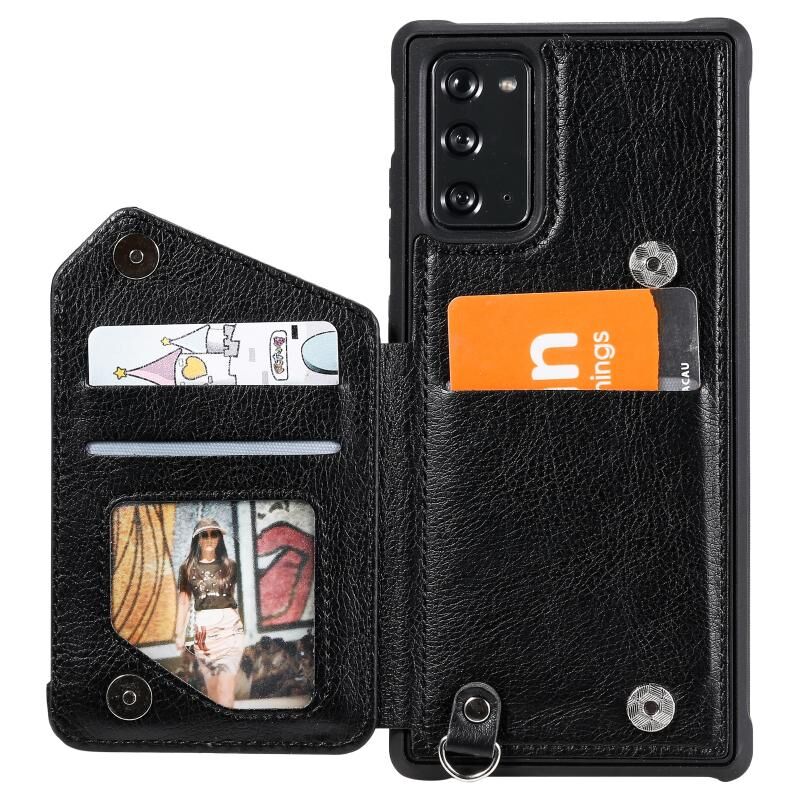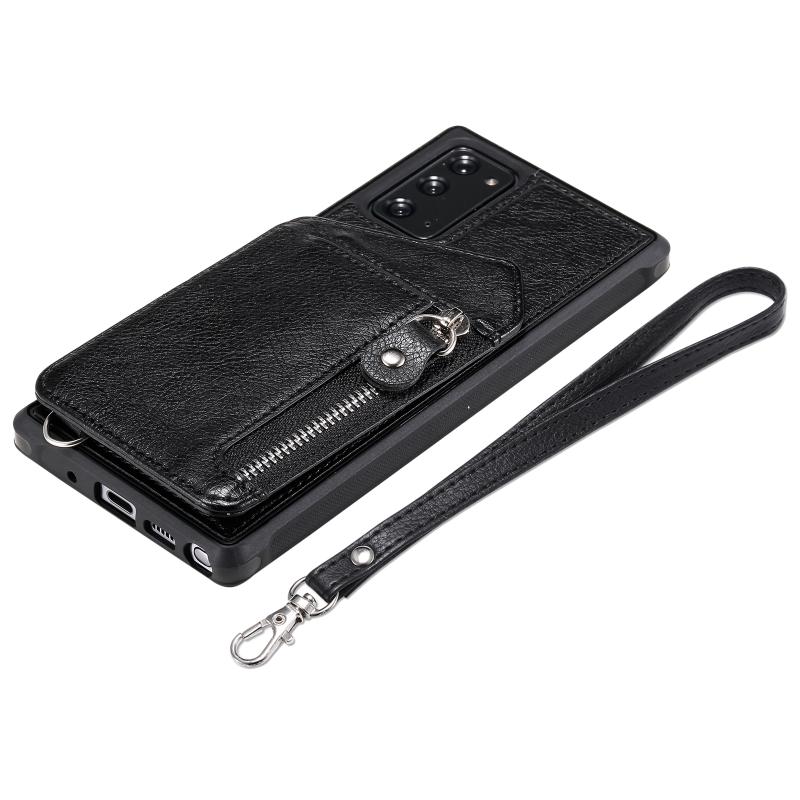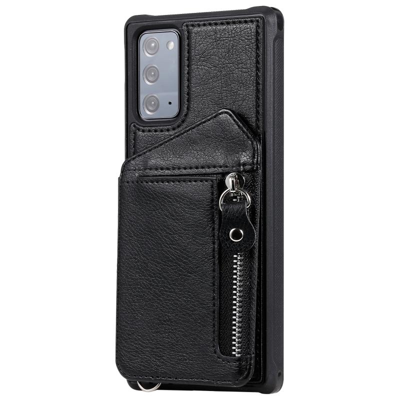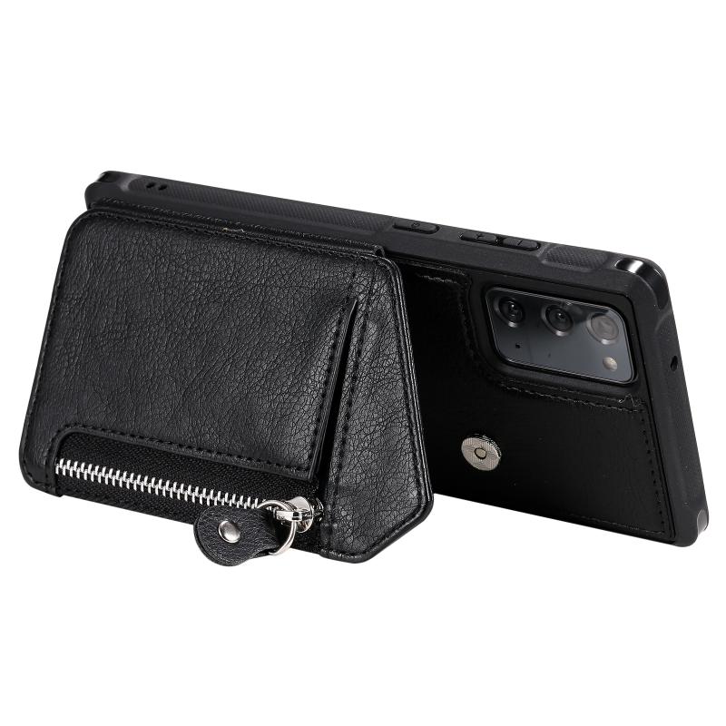 For Samsung Galaxy Note20 Zipper Double Buckle Shockproof Protective Case with Stand & Photo Holder & Wallet Function(Black)