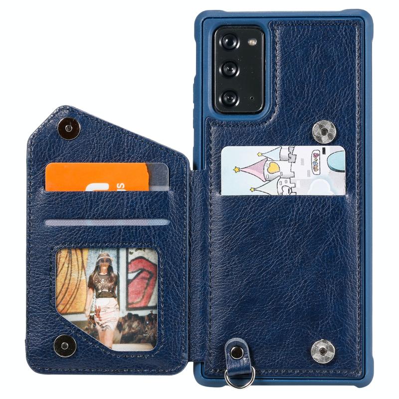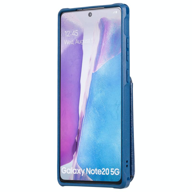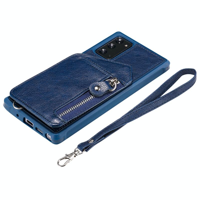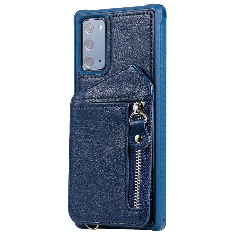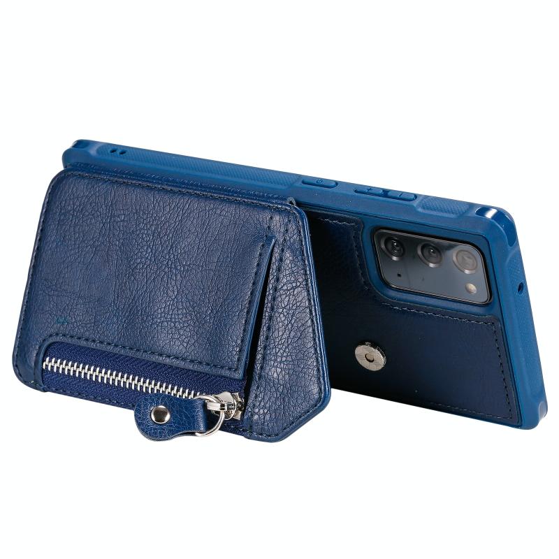 For Samsung Galaxy Note20 Zipper Double Buckle Shockproof Protective Case with Stand & Photo Holder & Wallet Function(Blue)