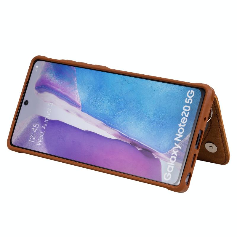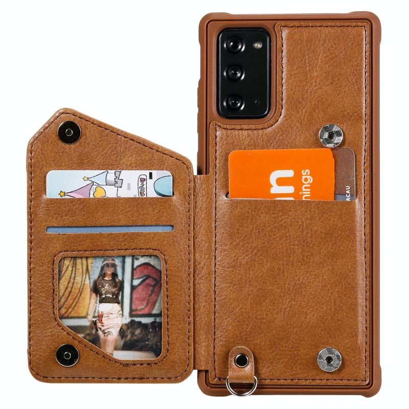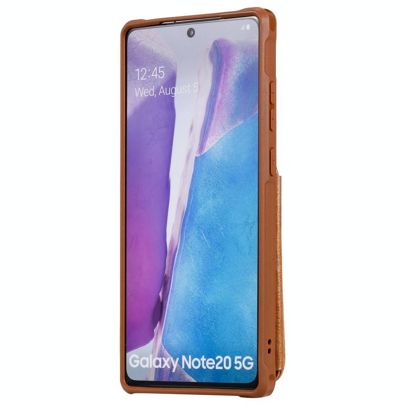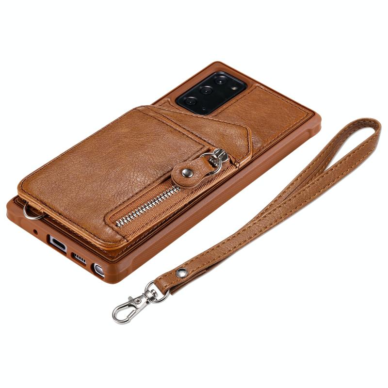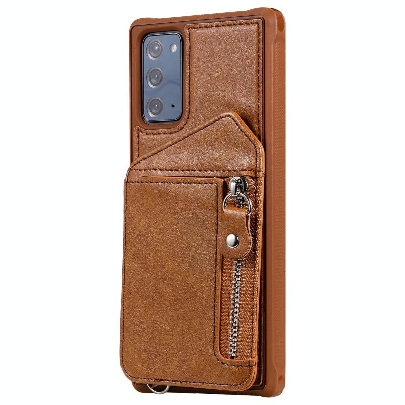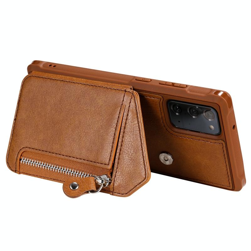 For Samsung Galaxy Note20 Zipper Double Buckle Shockproof Protective Case with Stand & Photo Holder & Wallet Function(Brown)