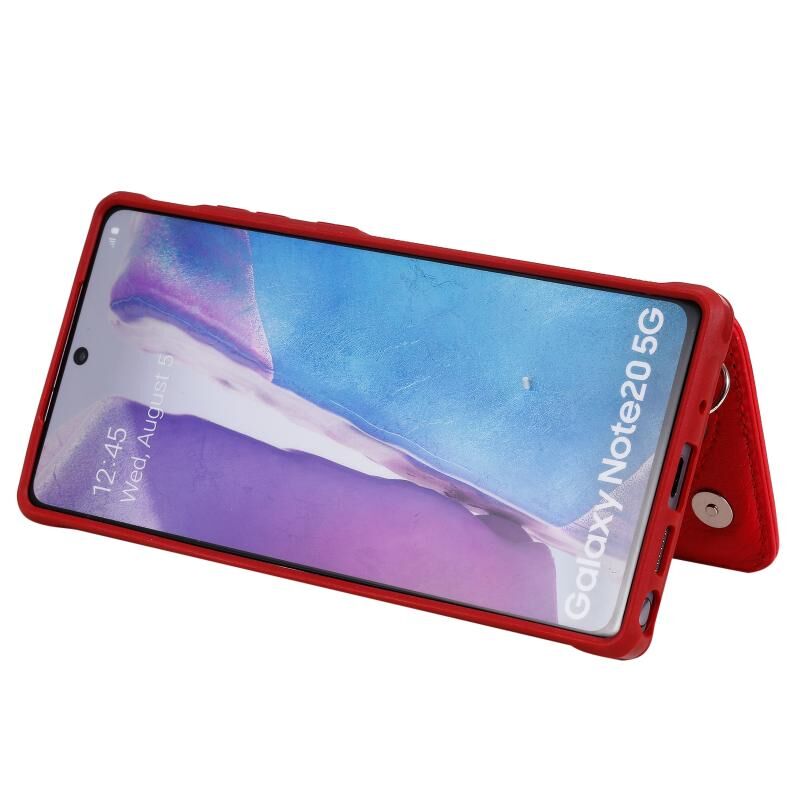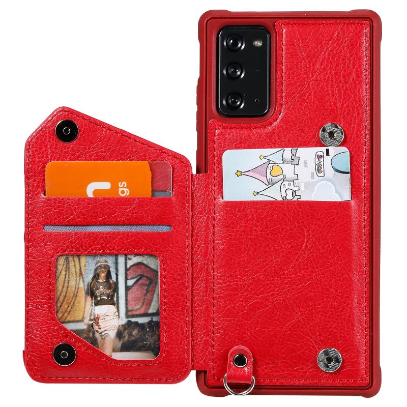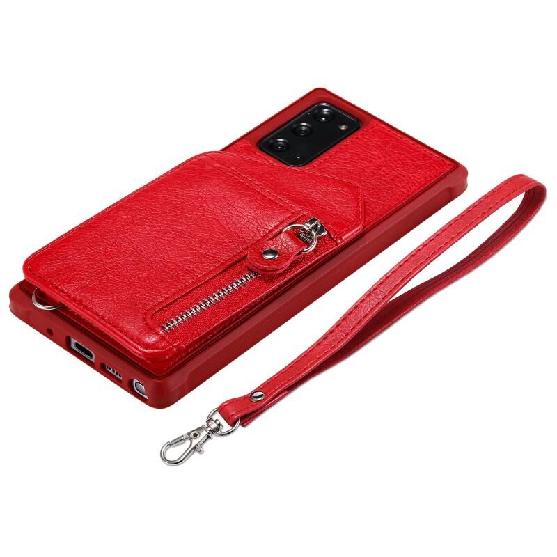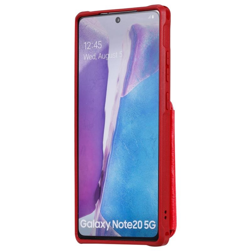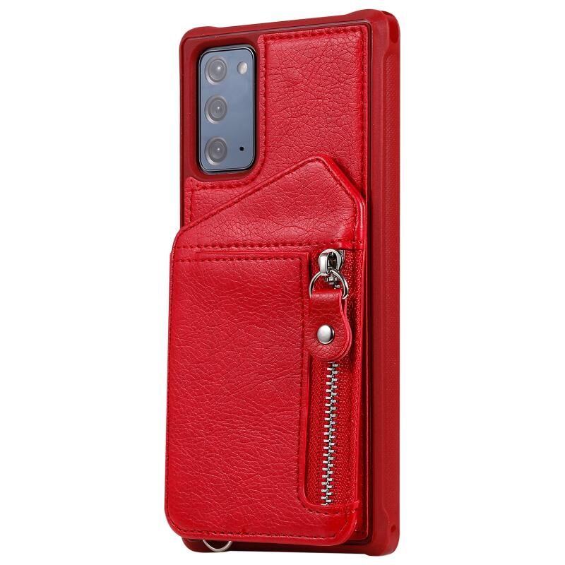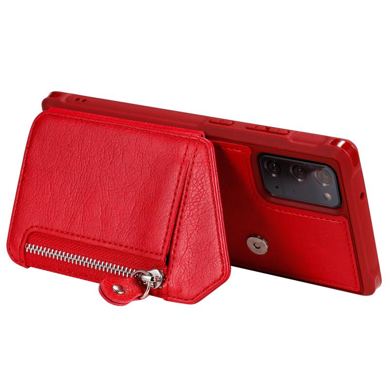 For Samsung Galaxy Note20 Zipper Double Buckle Shockproof Protective Case with Stand & Photo Holder & Wallet Function(Red)