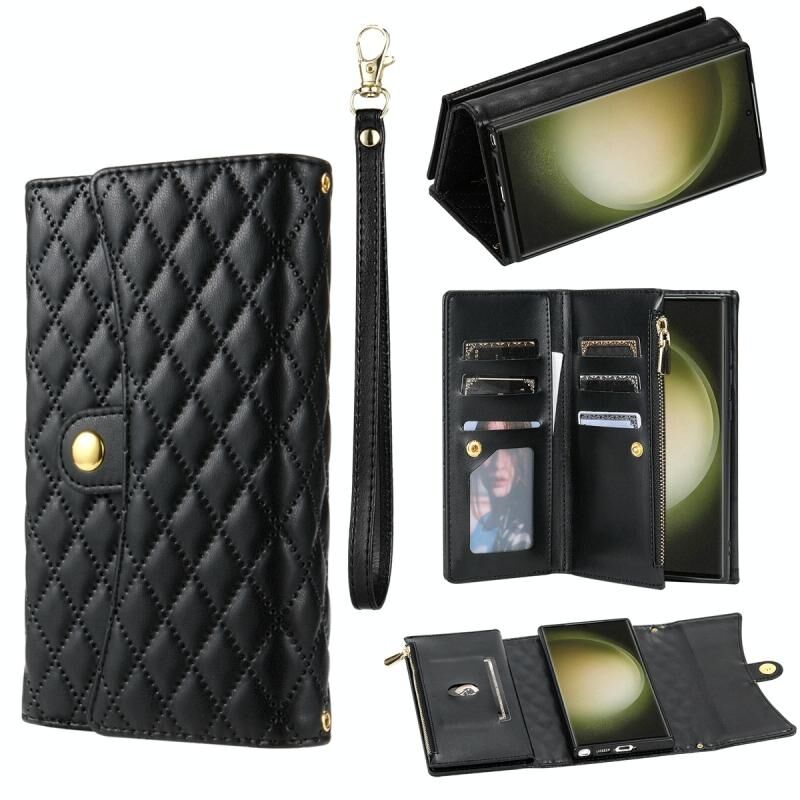 Για Samsung Galaxy Note20 φερμουάρ πολλαπλών καρτών πορτοφόλι ρομβοειδές δέρμα θήκη τηλεφώνου (Μαύρο)
