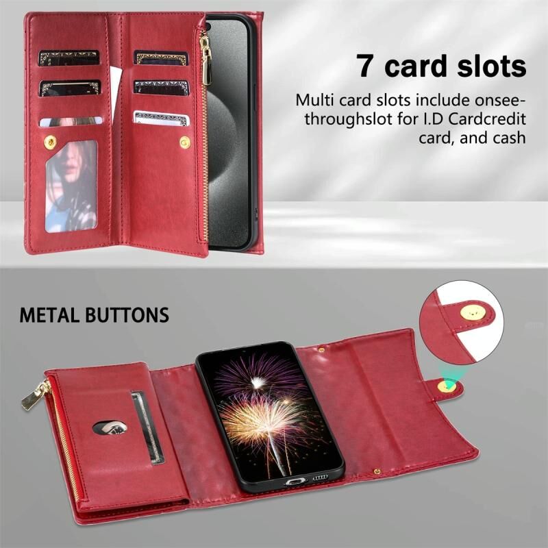 5. Λειτουργία πορτοφολιού πολλαπλών καρτών: Η υποδοχή κάρτας και η τσέπη πορτοφολιού με φερμουάρ και η θήκη μετρητών μπορούν να αποθηκεύσουν τις πιστωτικές σας κάρτες, τα μετρητά ή τα μικρά χαρτονομίσματα που χρειάζεστε καθημερινά.