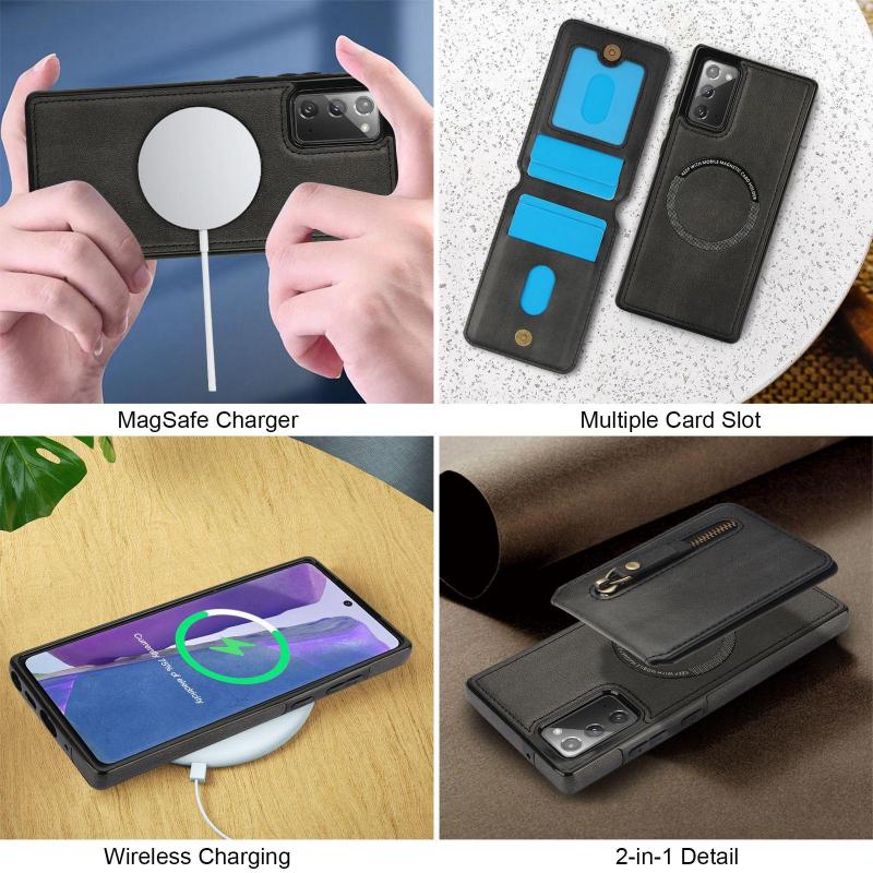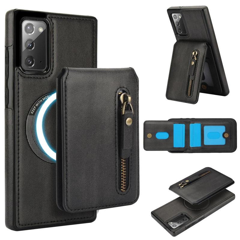 For Samsung Galaxy Note20 Zipper Wallet Split MagSafe Leather Back Phone Case(Black)