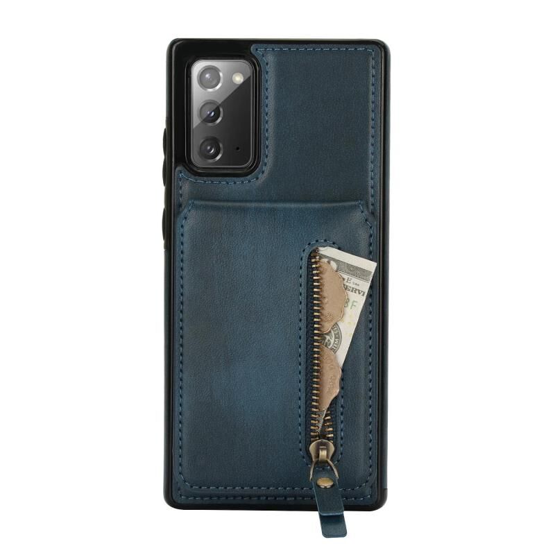 For Samsung Galaxy Note20 Zipper Wallet Split MagSafe Leather Back Phone Case(Blue)