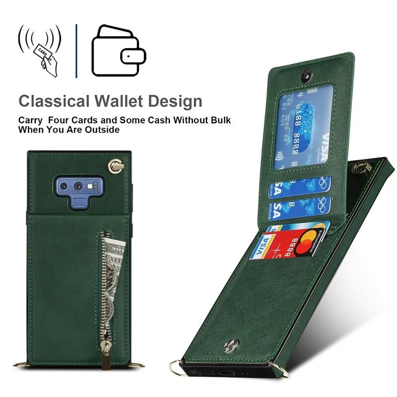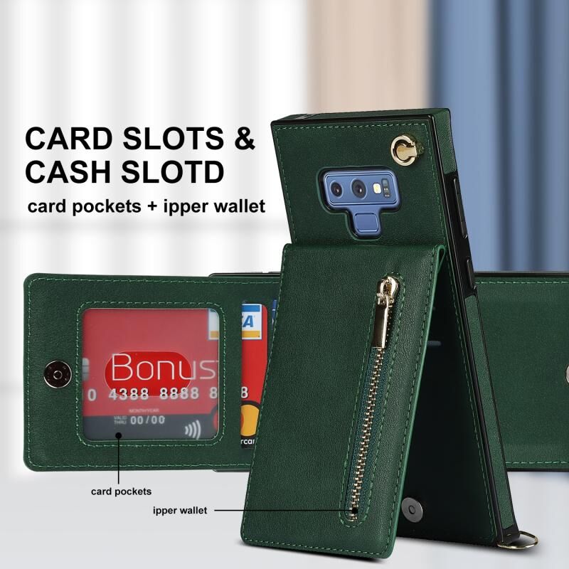 Για Samsung Galaxy Note9 Cross-body φερμουάρ τετράγωνο TPU + PU πίσω κάλυμμα θήκη με θήκη & υποδοχές για κάρτες & πορτοφόλι & λουράκι (πράσινο)