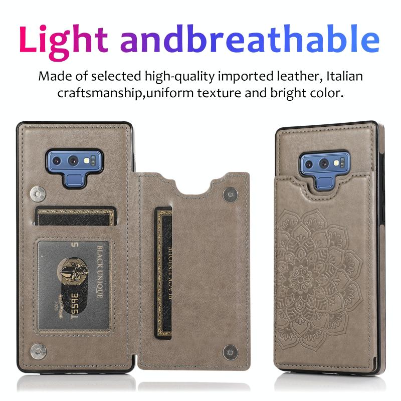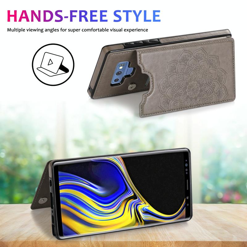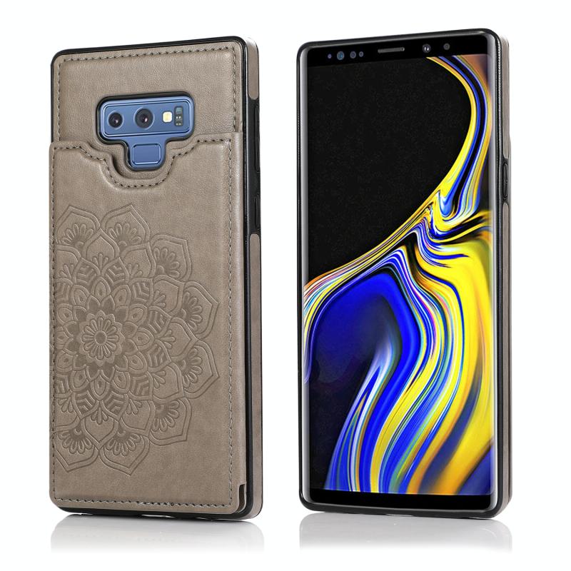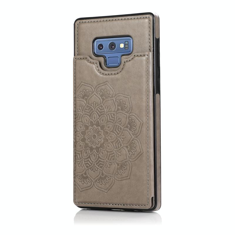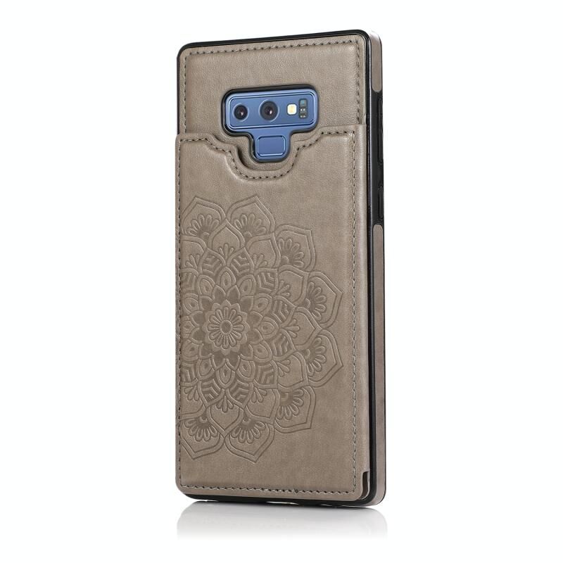Θήκη προστασίας για Samsung Galaxy Note9 με διπλή αγκράφα, μοτίβο Mandala από PU+TPU με θήκες για κάρτες & βάση στήριξης & κορνίζα φωτογραφιών (Γκρι)