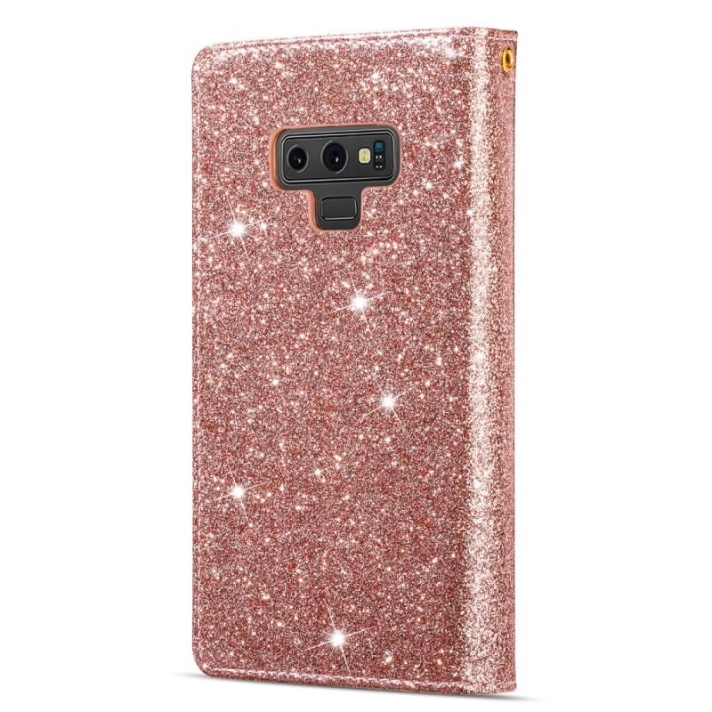 Θήκη δέρματος οριζόντιας αναδίπλωσης με φερμουάρ, λαμπερή με χάραξη λέιζερ αστρικού ουρανού και πολλαπλές θήκες καρτών για Samsung Galaxy Note9, με βάση, πορτοφόλι και λουρί (Ροζ χρυσός)